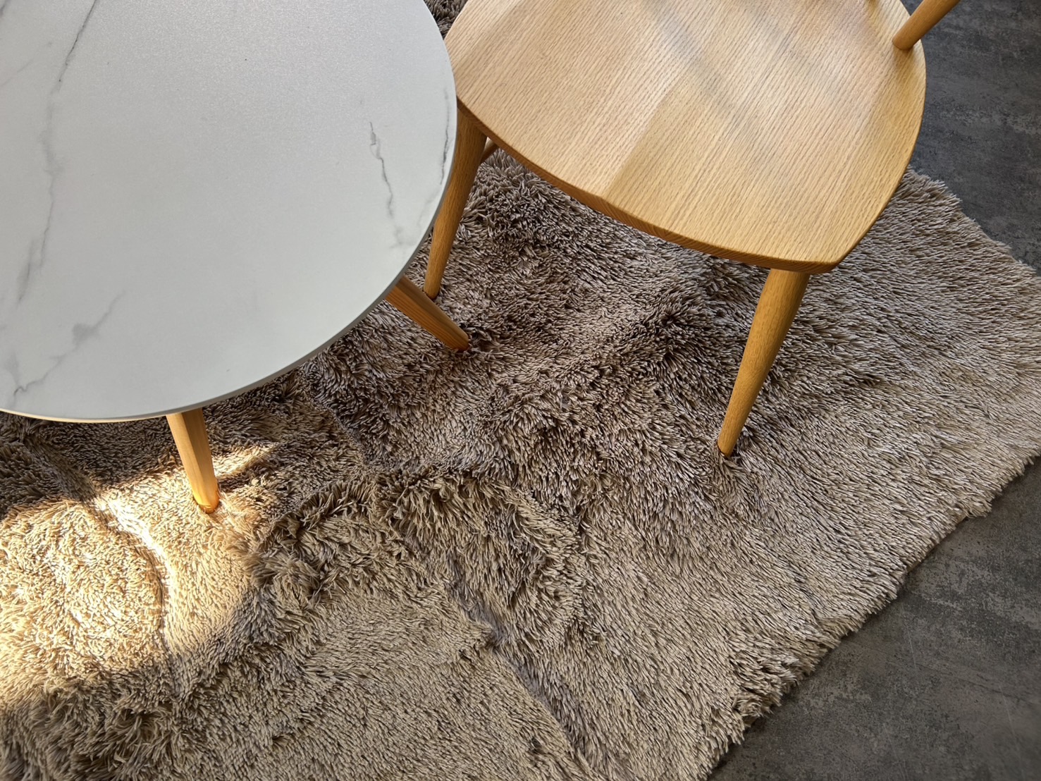 毛足が長く、しっとりなめらかな肌触りのラグマット。