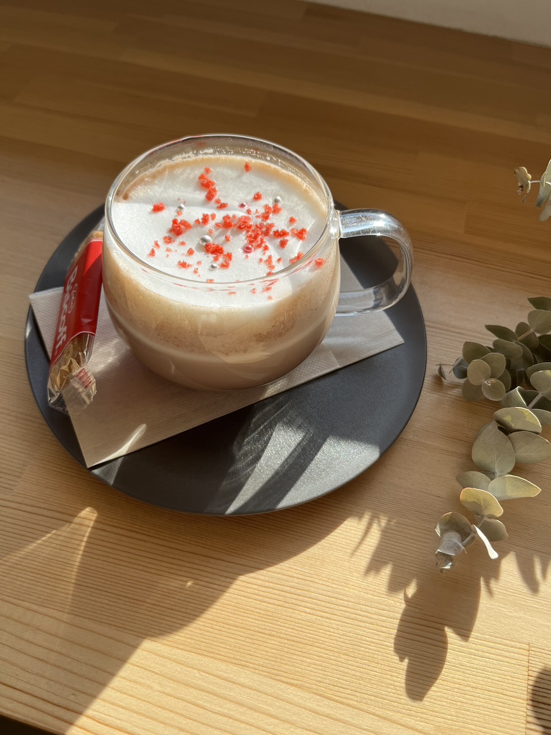 チョコレートソースとふんわりクリーミーなミルクの甘みに、ホッと癒される一杯です。コーヒーが入っていないので、コーヒーが苦手な方やお子様にもオススメです☕︎