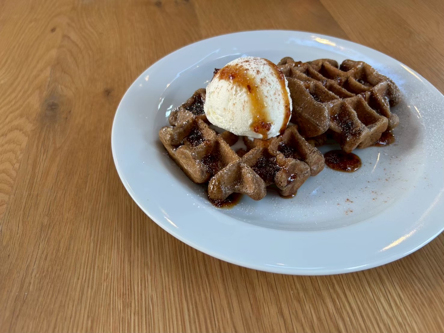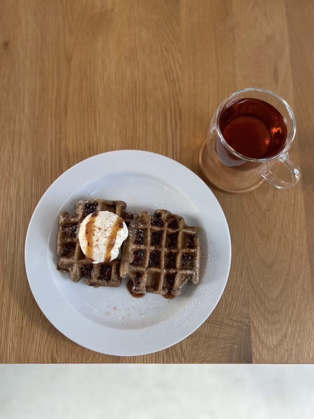 香ばしく焼きあげたコーヒーワッフルにラムレーズンソースの華やかな香り𓍯