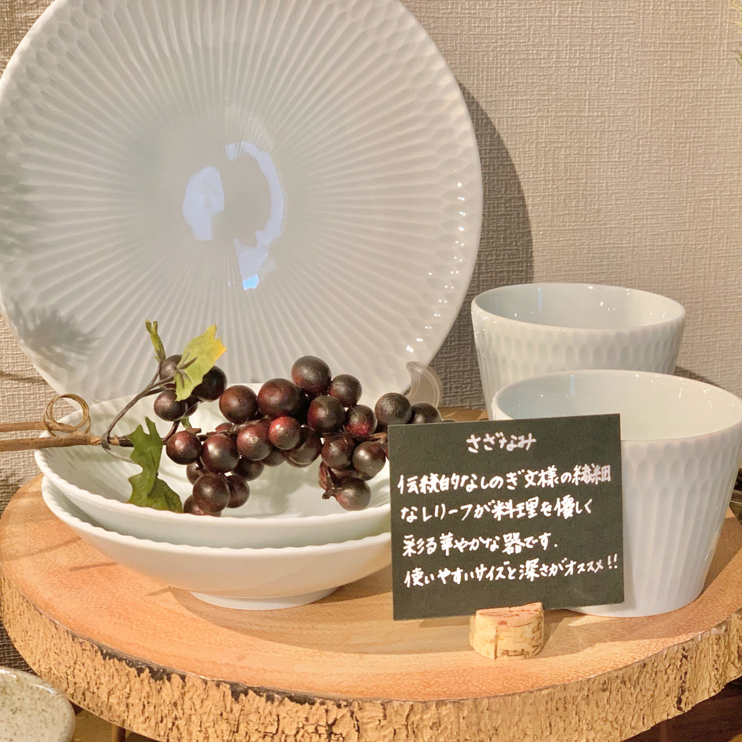 伝統的なしのぎ文様の繊細なレリーフが料理を優しく彩る器です