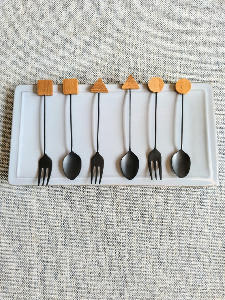 木製×マットブラックがモダンな印象のカトラリー。