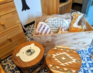 大工さん手作りの木のボックスも売っておりますので、ぜひ遊びに来てください!!
