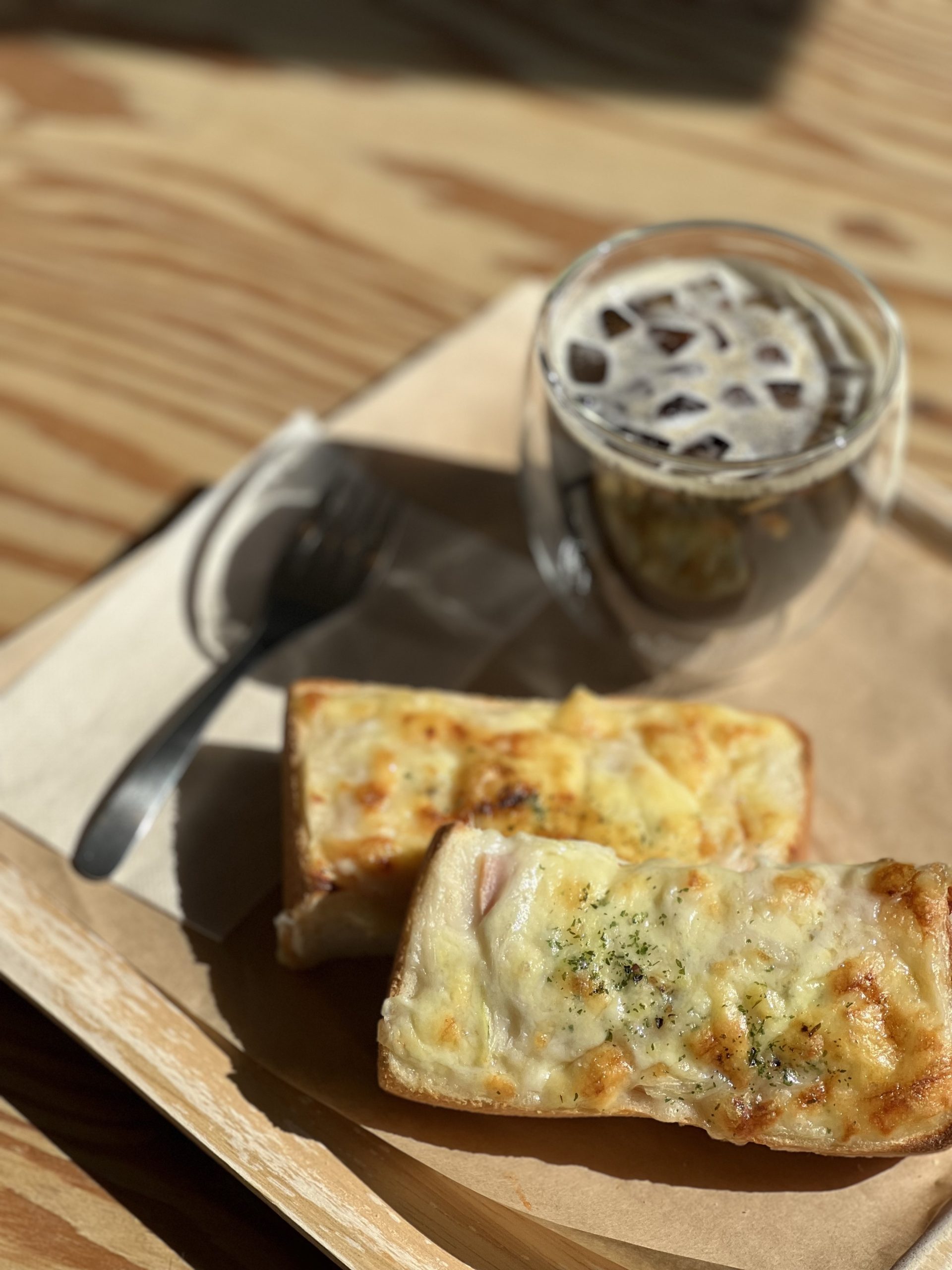 玉ねぎの入ったホワイトソースとハムをのせ、仕上げにブラックペッパーととろけるチーズをのせています。とてもクリーミーな味わいです。
