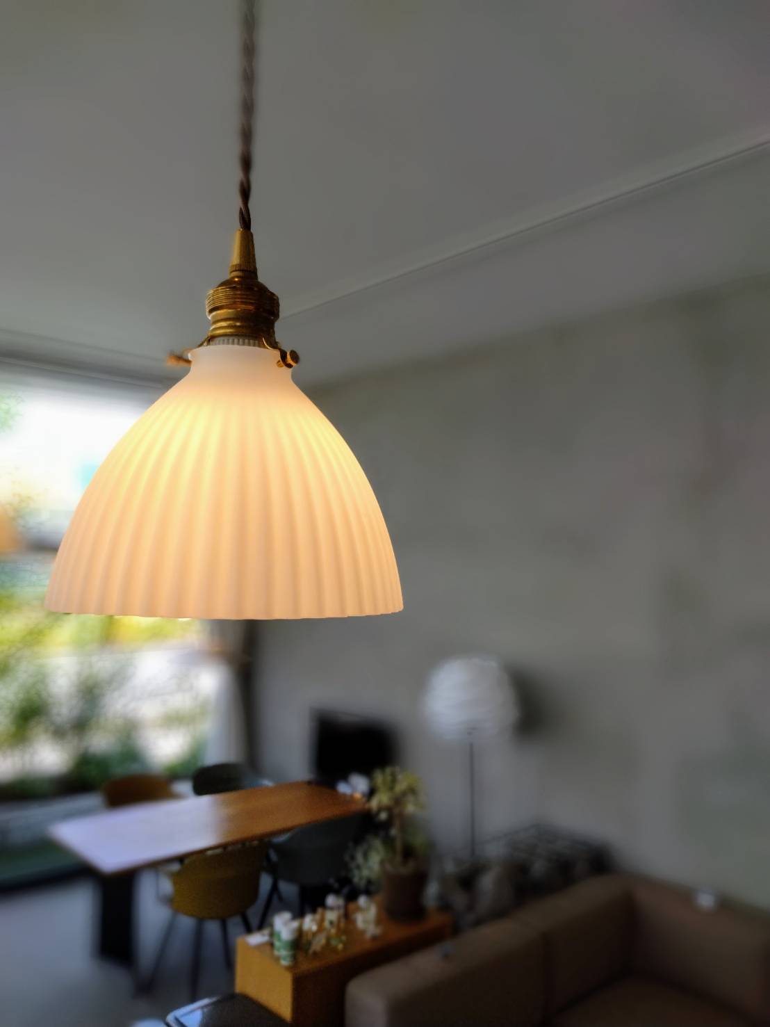 光を通しますが、半透明なので光源自体は直接目に入らず、ほどよく空間全体に明かりが広がります。