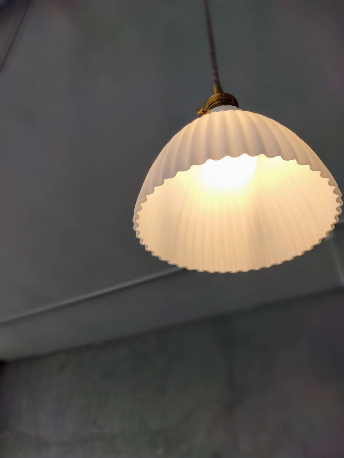 真っ白な貝殻みたいなプリーツで、エレガントな雰囲気漂うミドルサイズシェードです。
