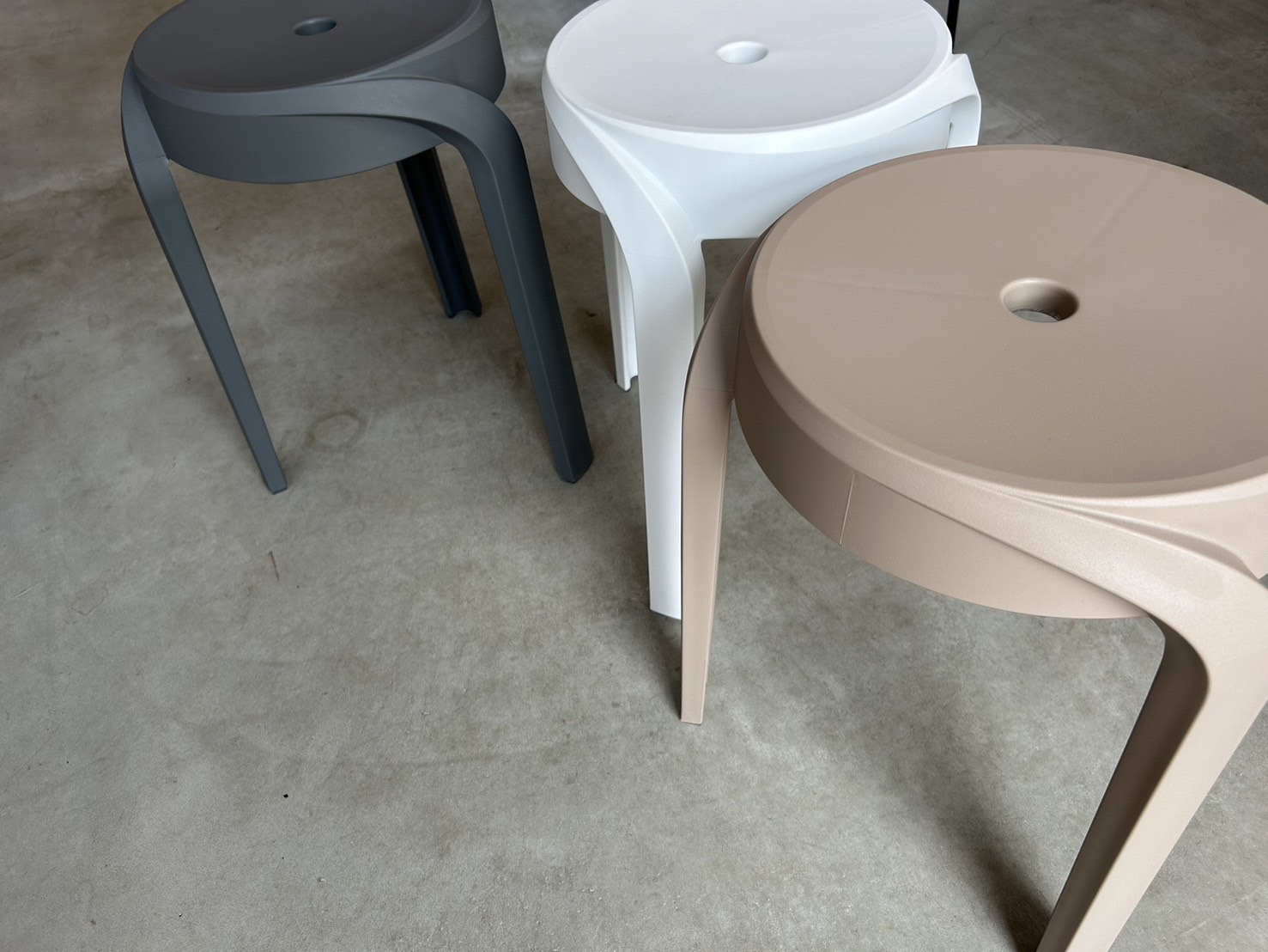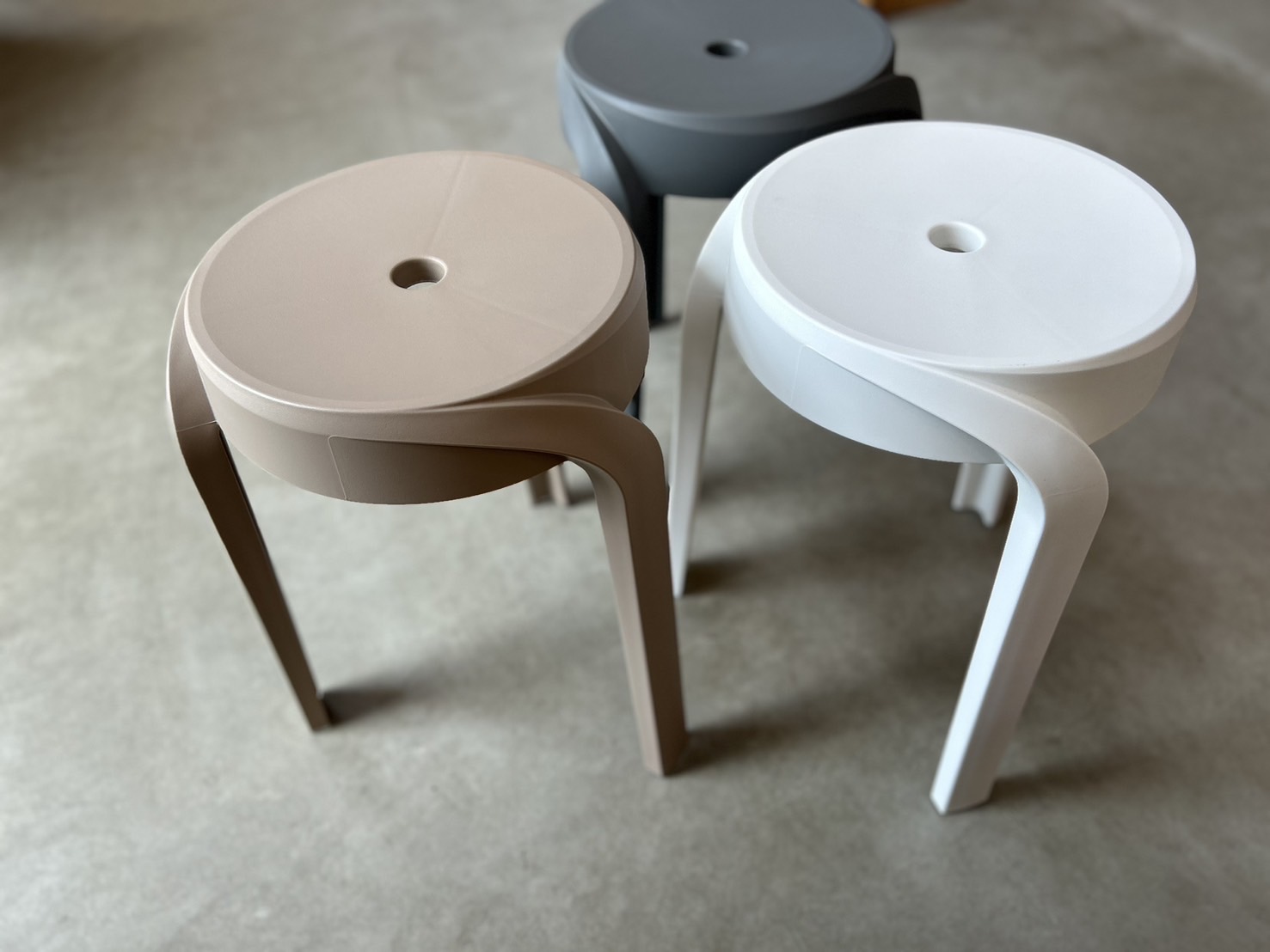 スタッキングができるモダンカラーのスツール。