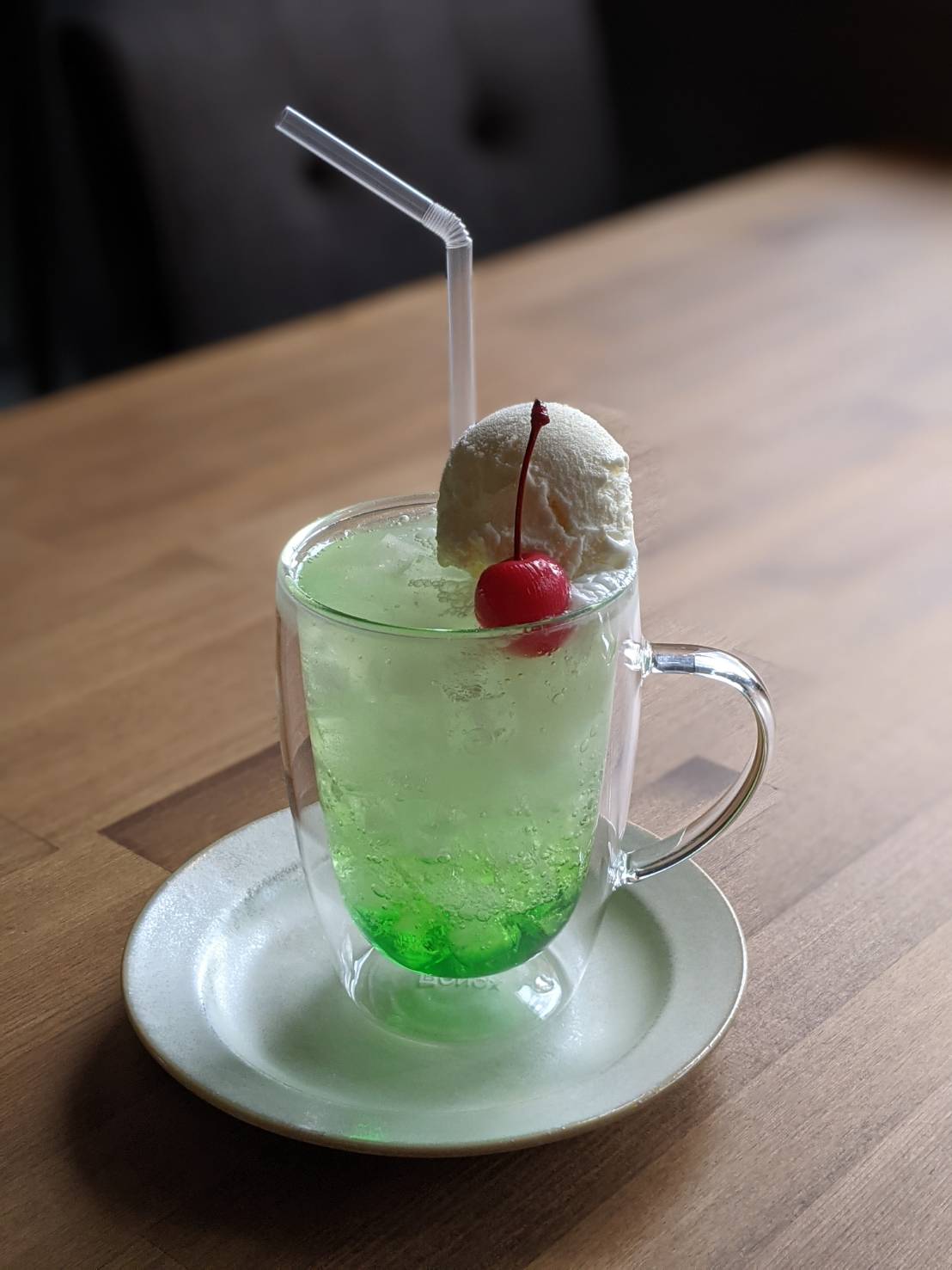 当店では夏にクリームソーダ用として使用している大きなマグまで
