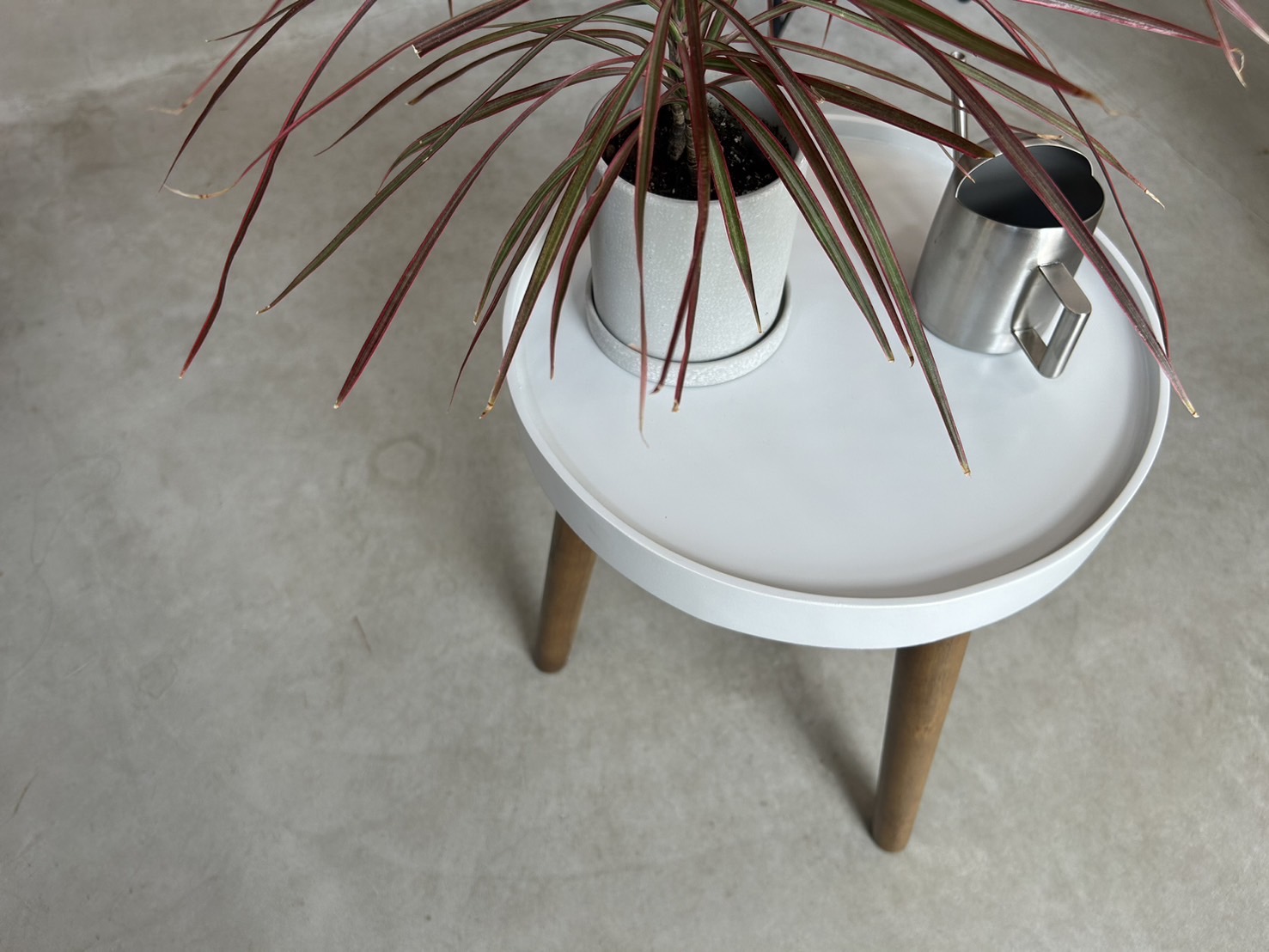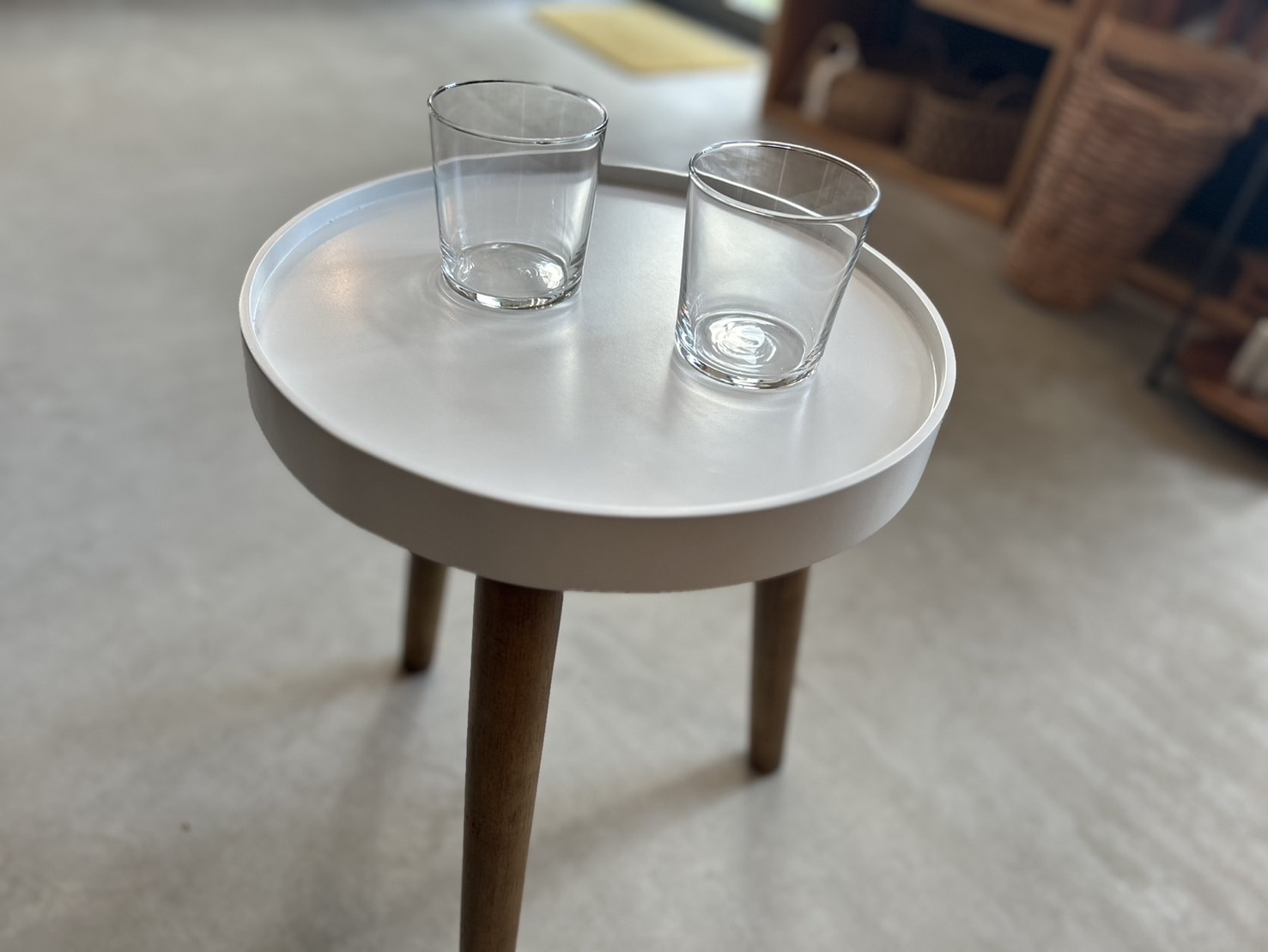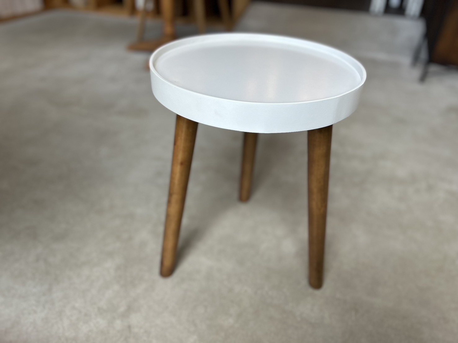 三本脚のシンプルな丸テーブル。