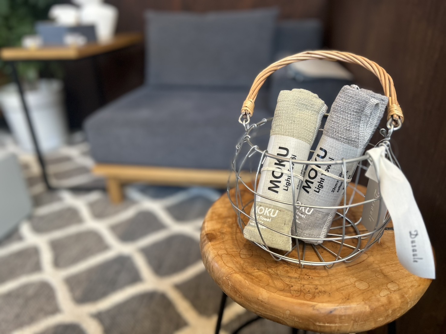 そのまま飾るだけでもお洒落なワイヤーハンドルバスケット