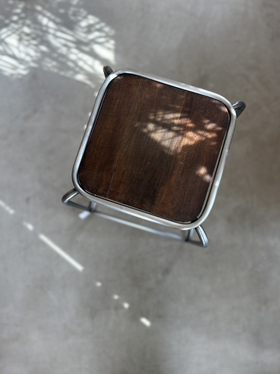 研磨痕をあえて残したアカシア材にスチール製のフレームを合わせています◎