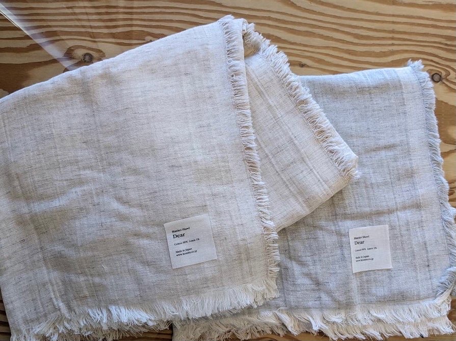 コットン99%リネン1%のさらりとしてとても肌触りの良いショールです。