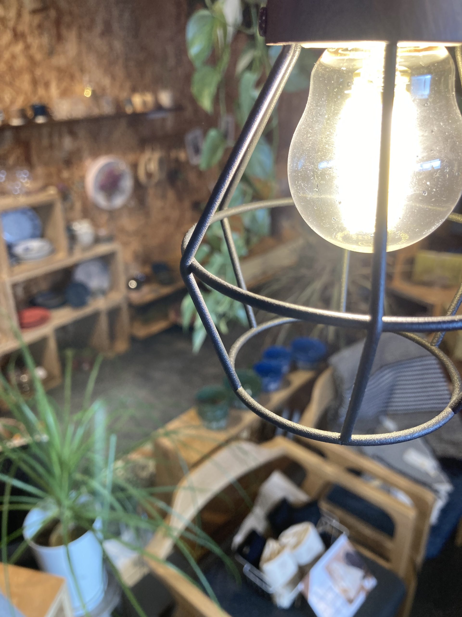 写真の照明は木製で周りが木製でできており、温かみのあるコロンとした照明です👏🏻