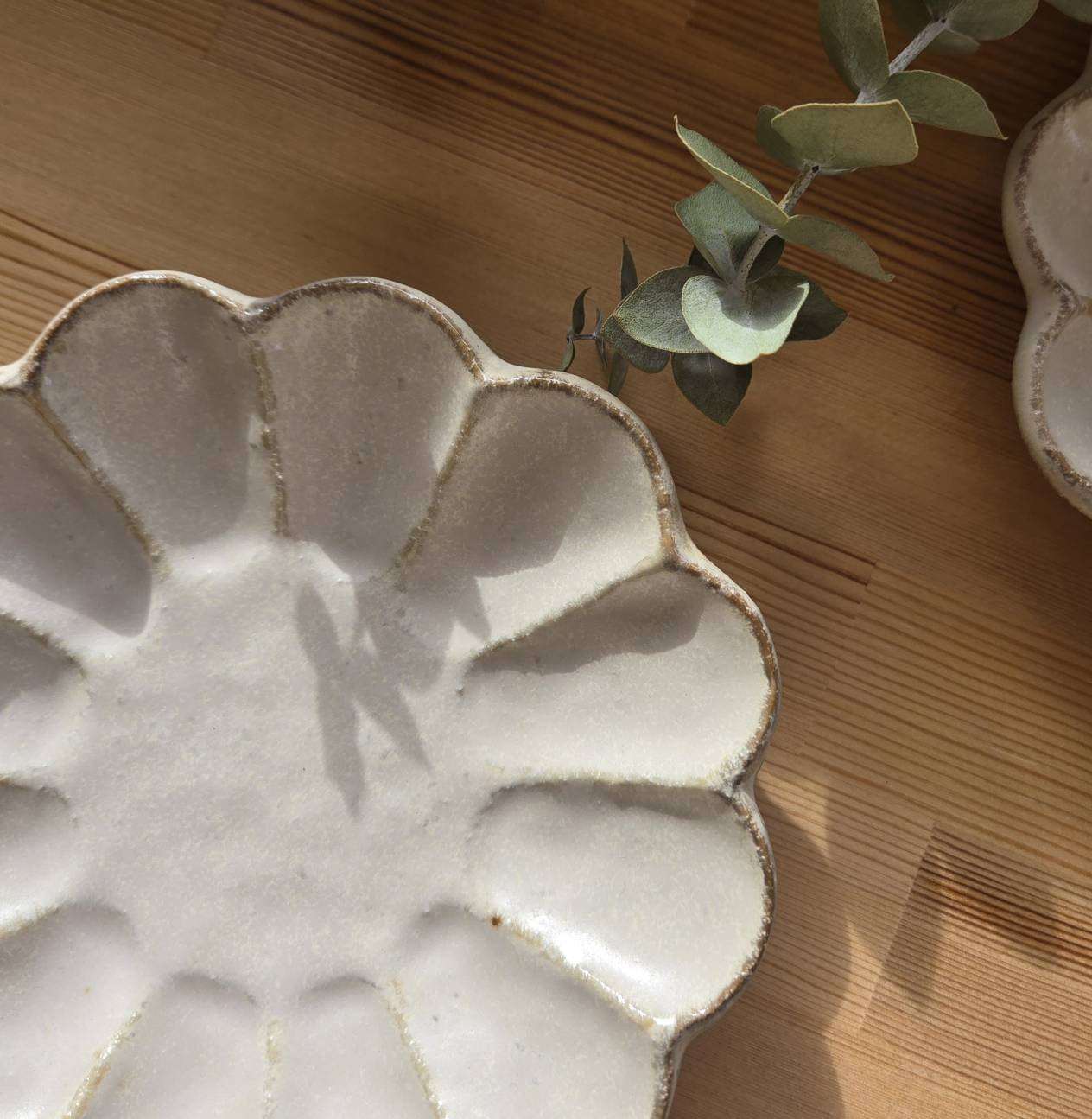 上から覗くと満開に咲いた花のようなデザインで、和にも洋にも合わせやすく、料理が映えるプレートです。