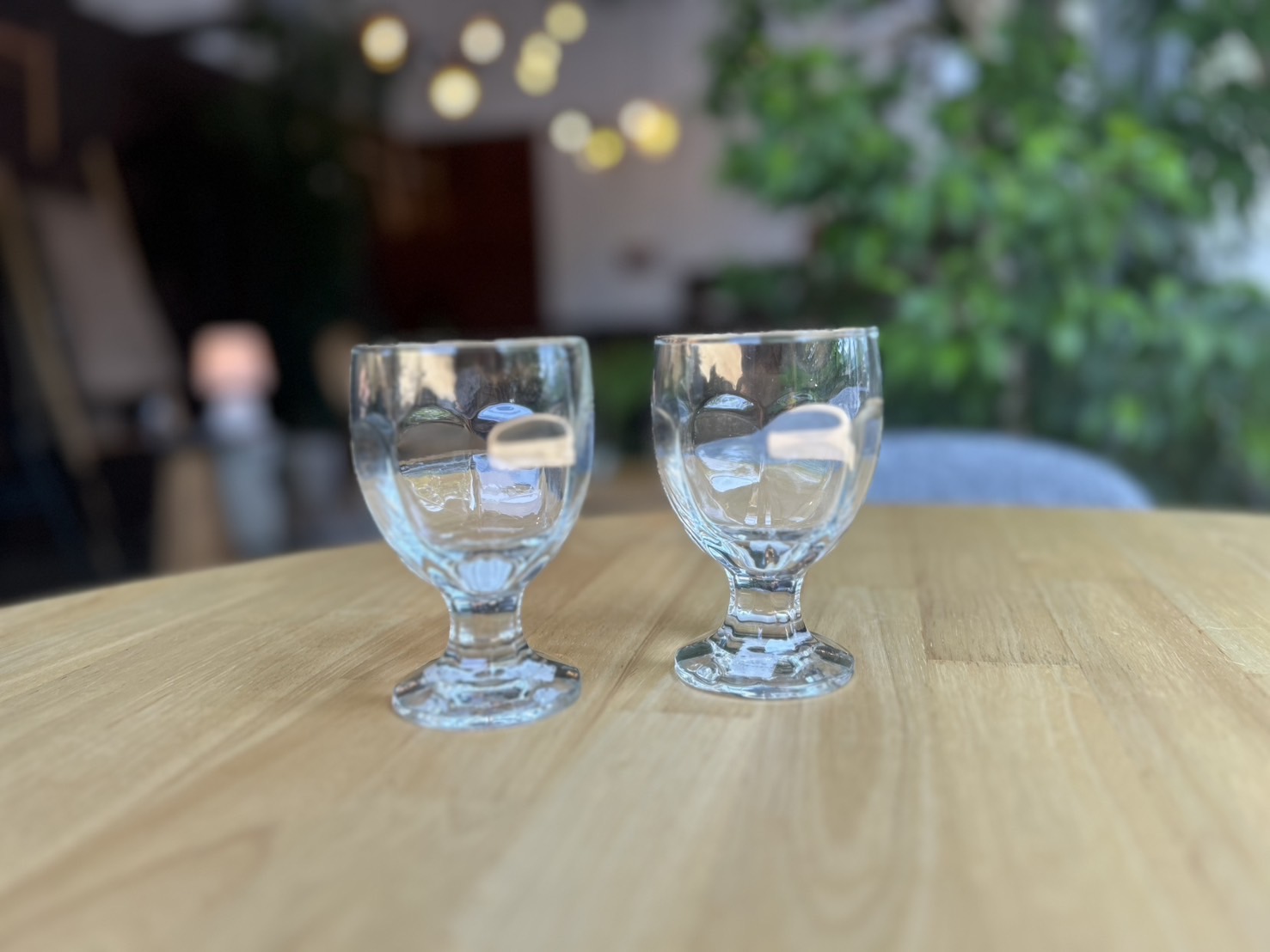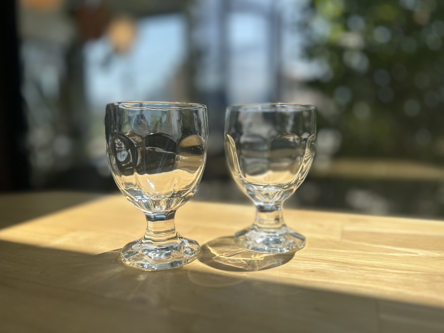 ぽってりとした厚めのガラスと、短めのステムが愛らしいデザイン。