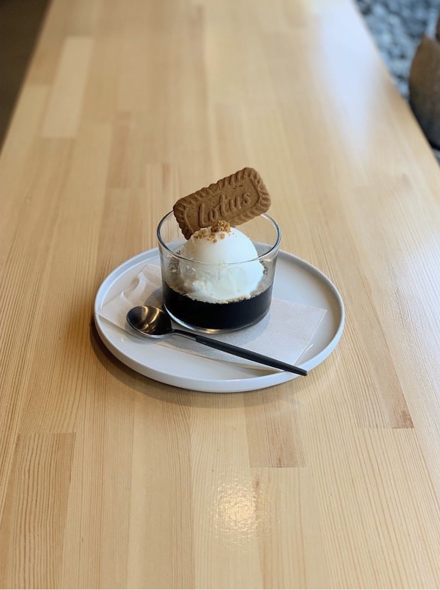 深煎りコーヒーゼリーにバニラアイスをトッピング