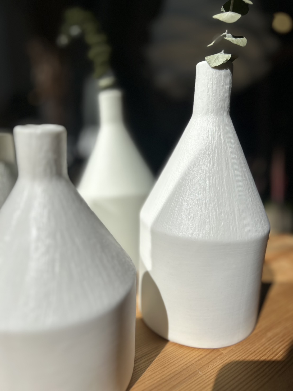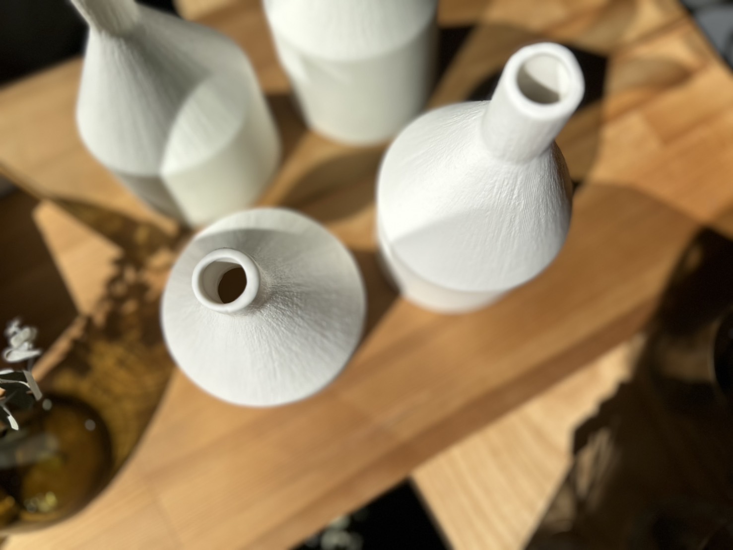 やわらかい光に映える、静かな存在感のフラワーベース。