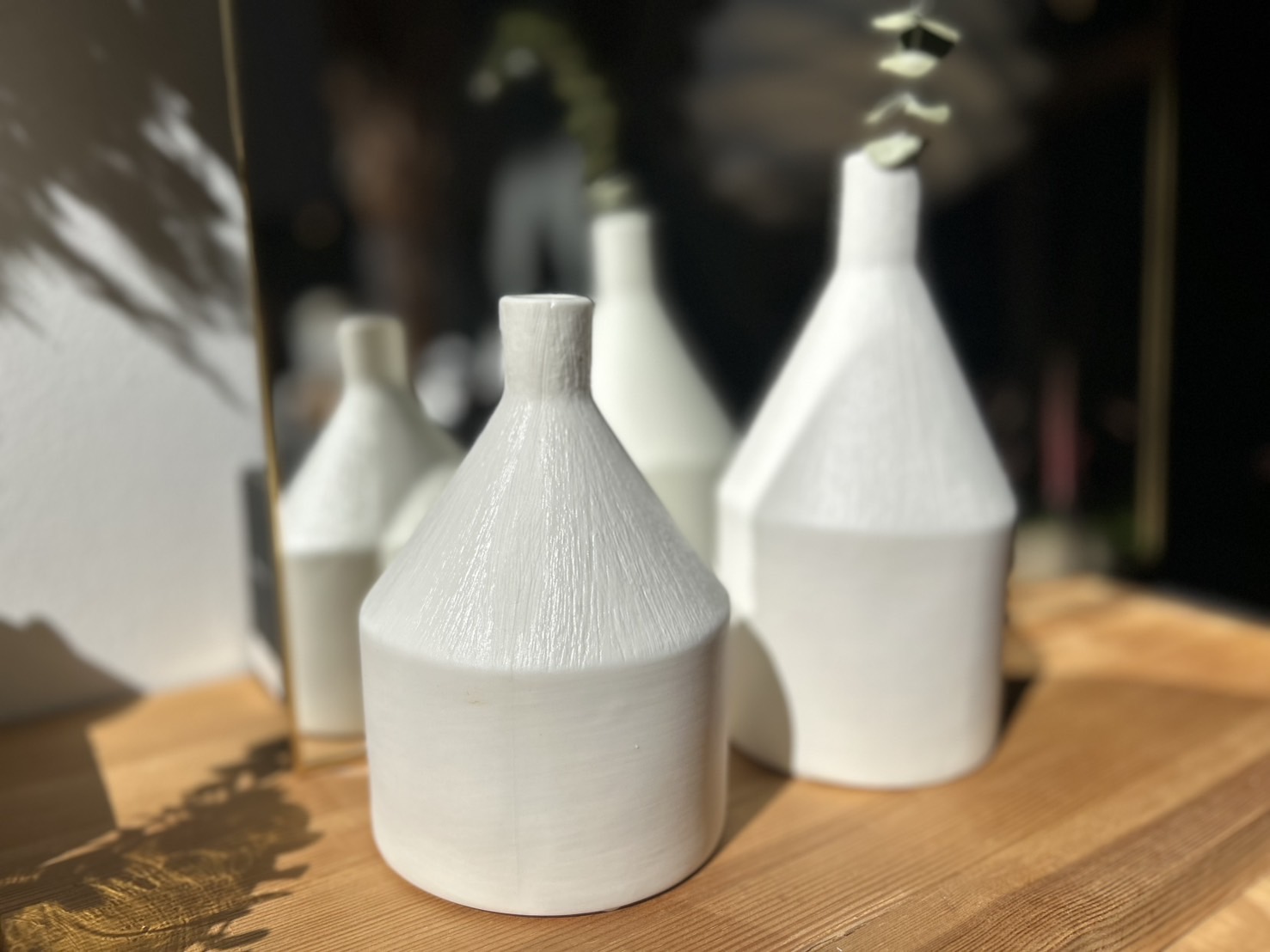 光をまとう白のフラワーベース