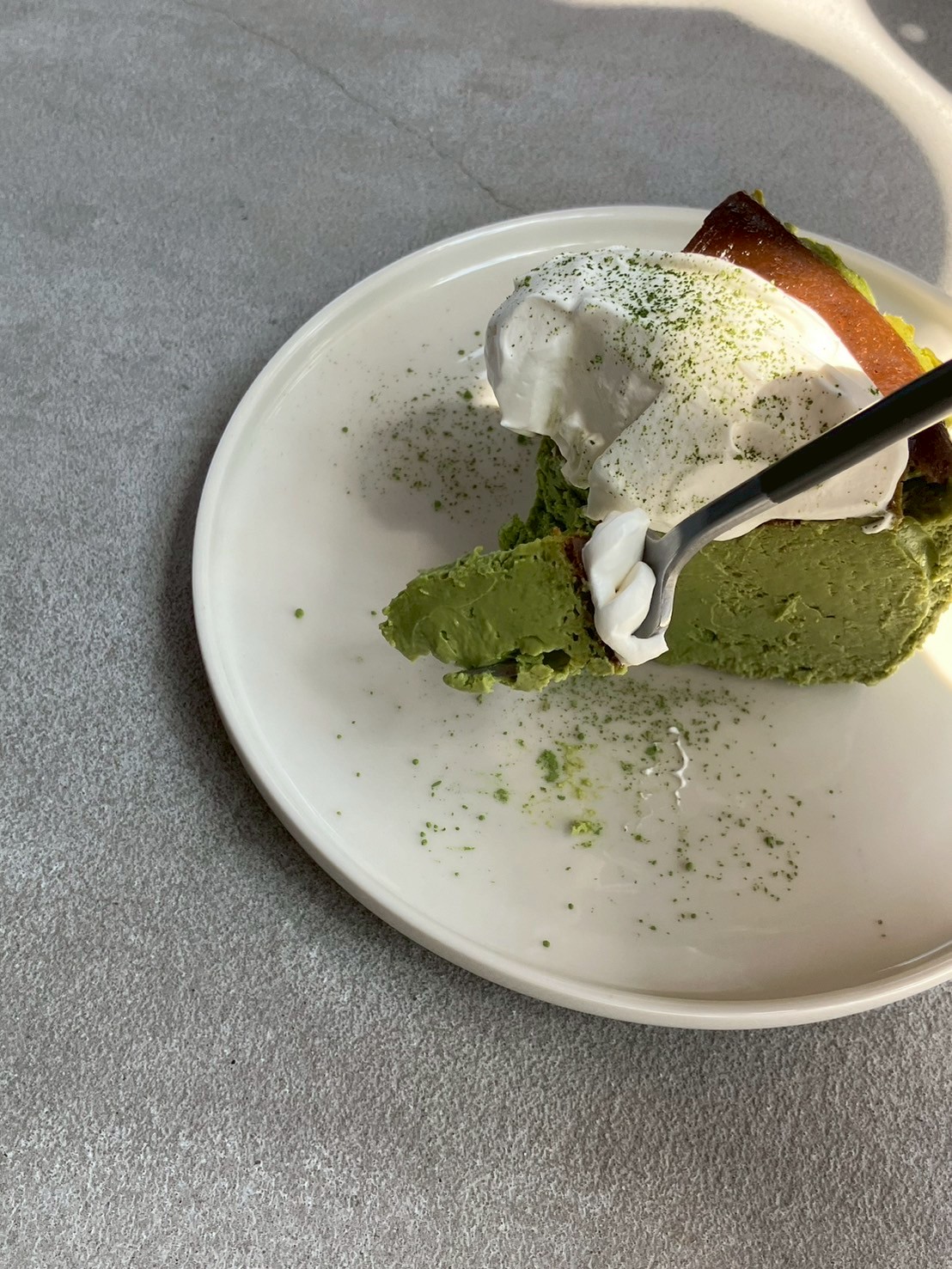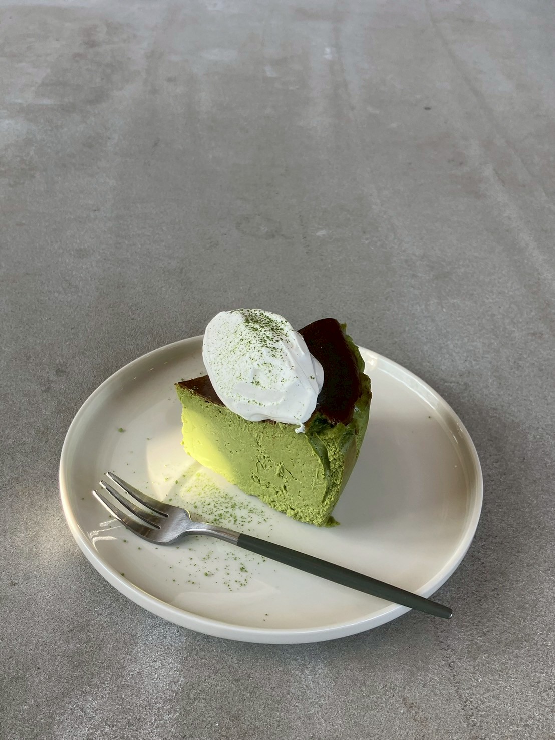 今日のおやつは抹茶のバスクチーズケーキご用意しております。