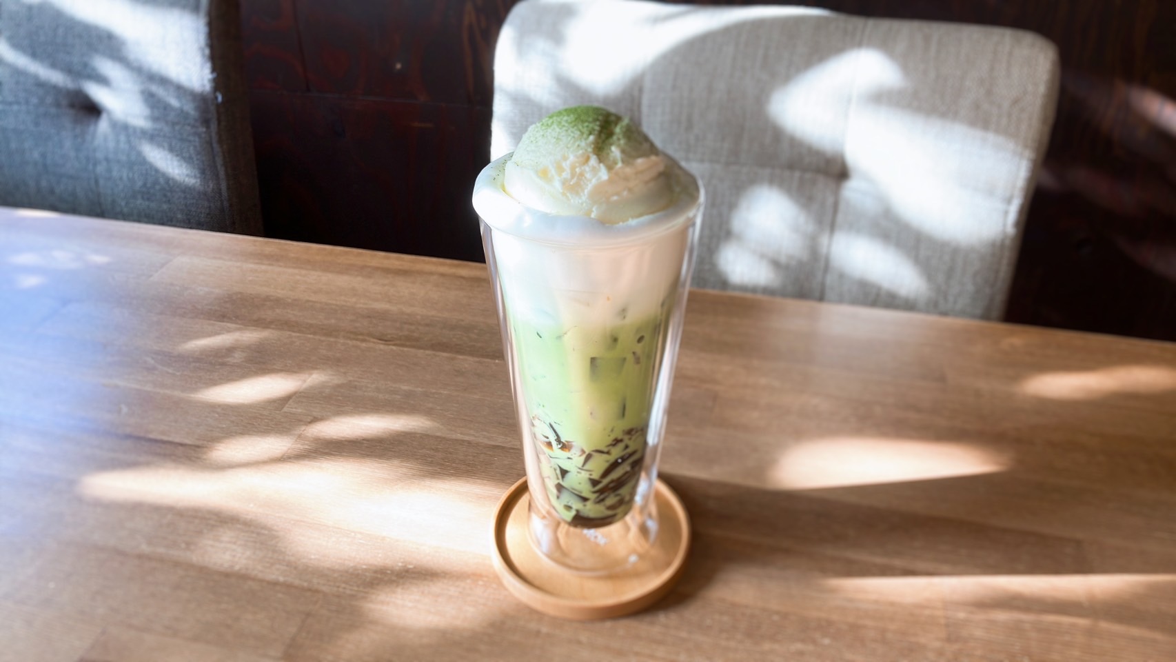 ほろ苦いコーヒーゼリーが抹茶ラテにもよく合います