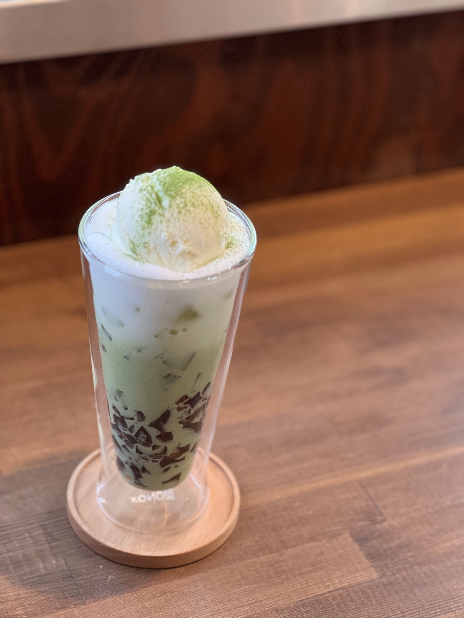 抹茶ラテにコーヒーゼリーが入っていて