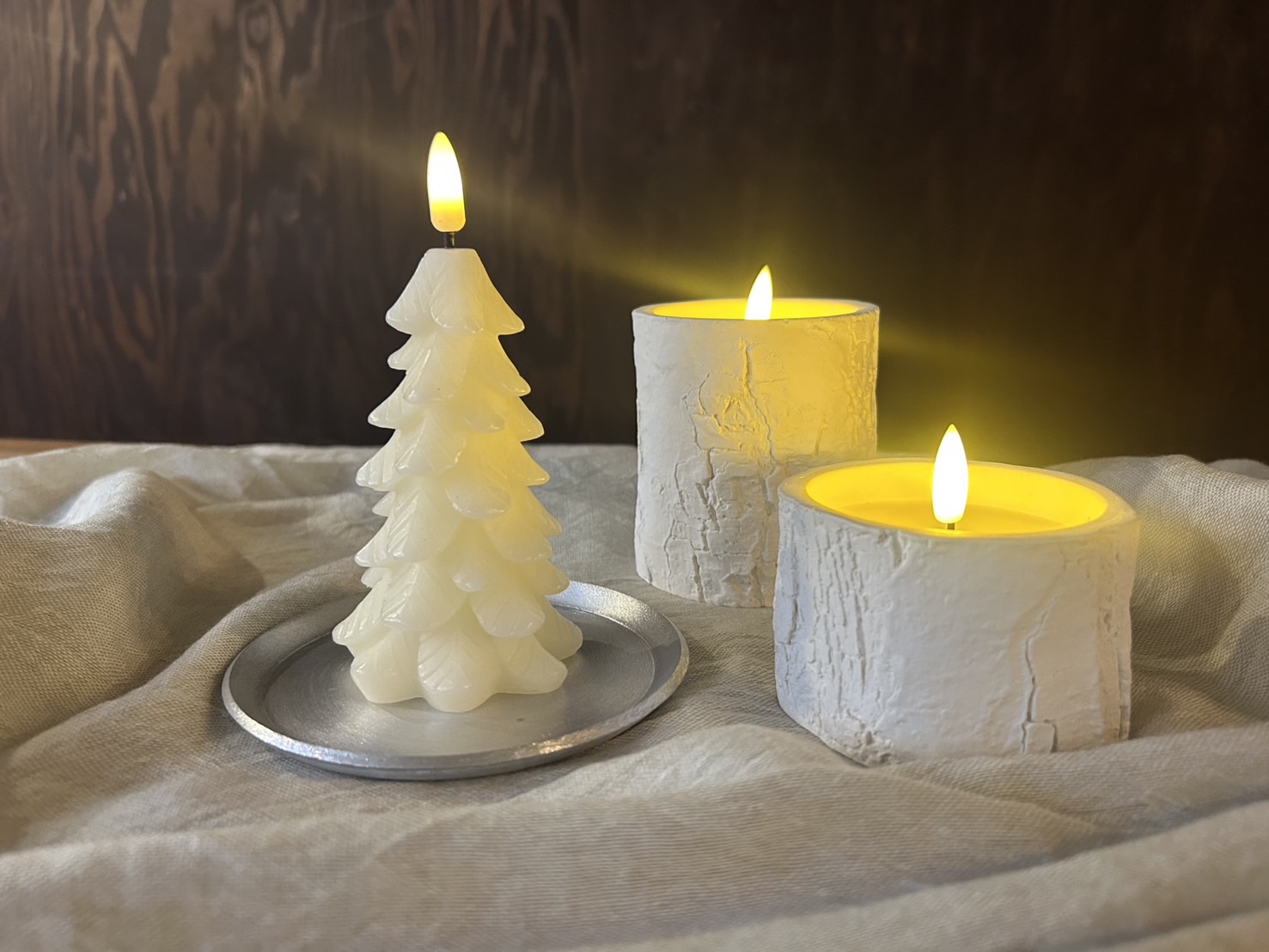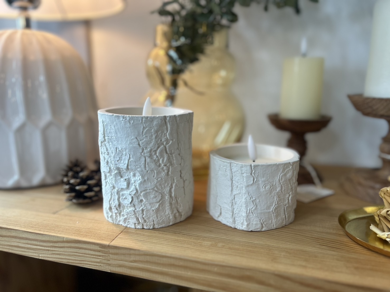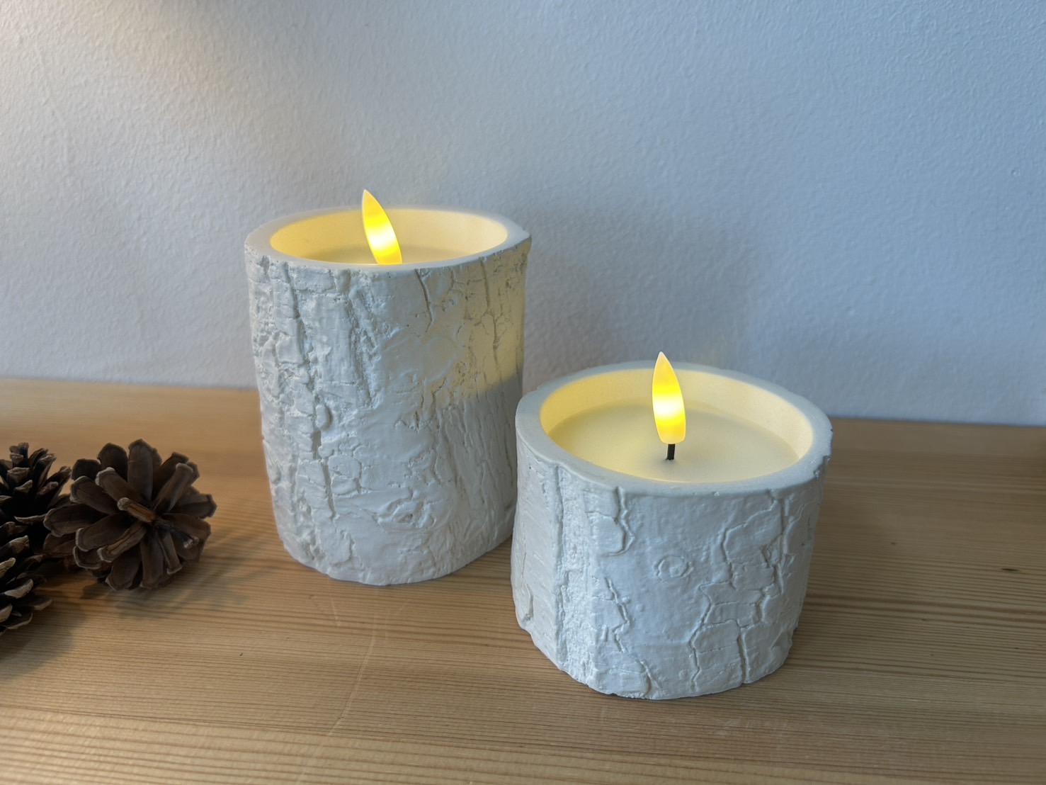 白樺の切り株のようなやさしい質感が魅力のLEDキャンドル。