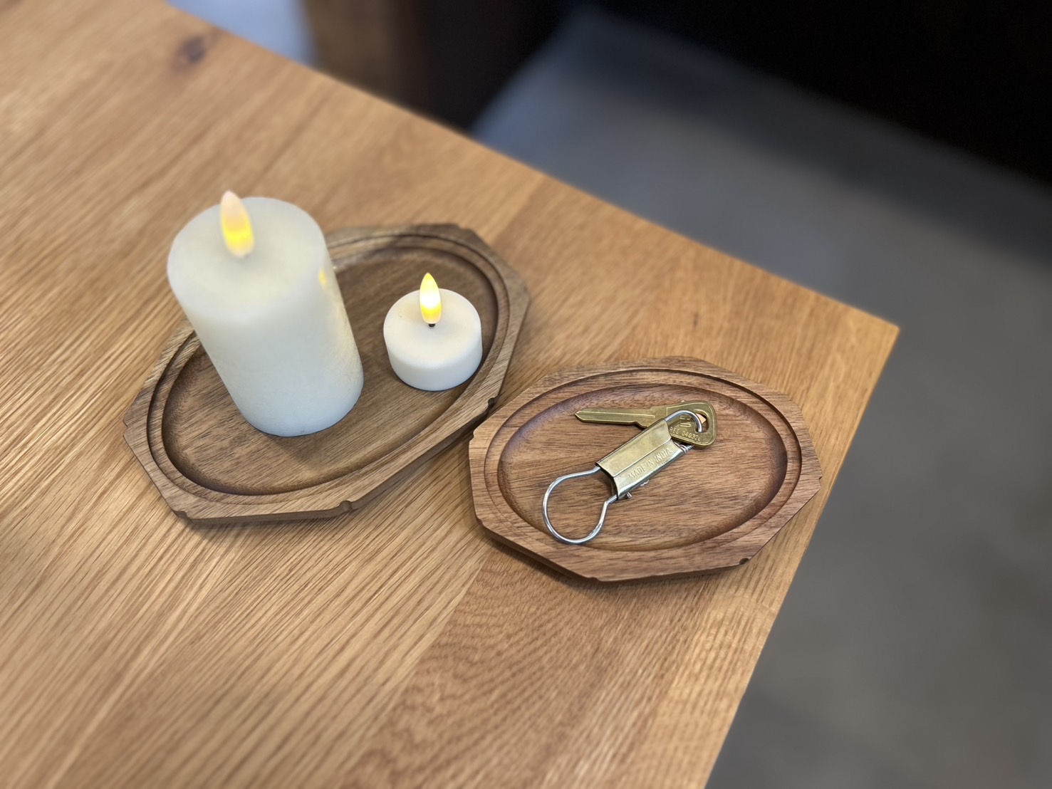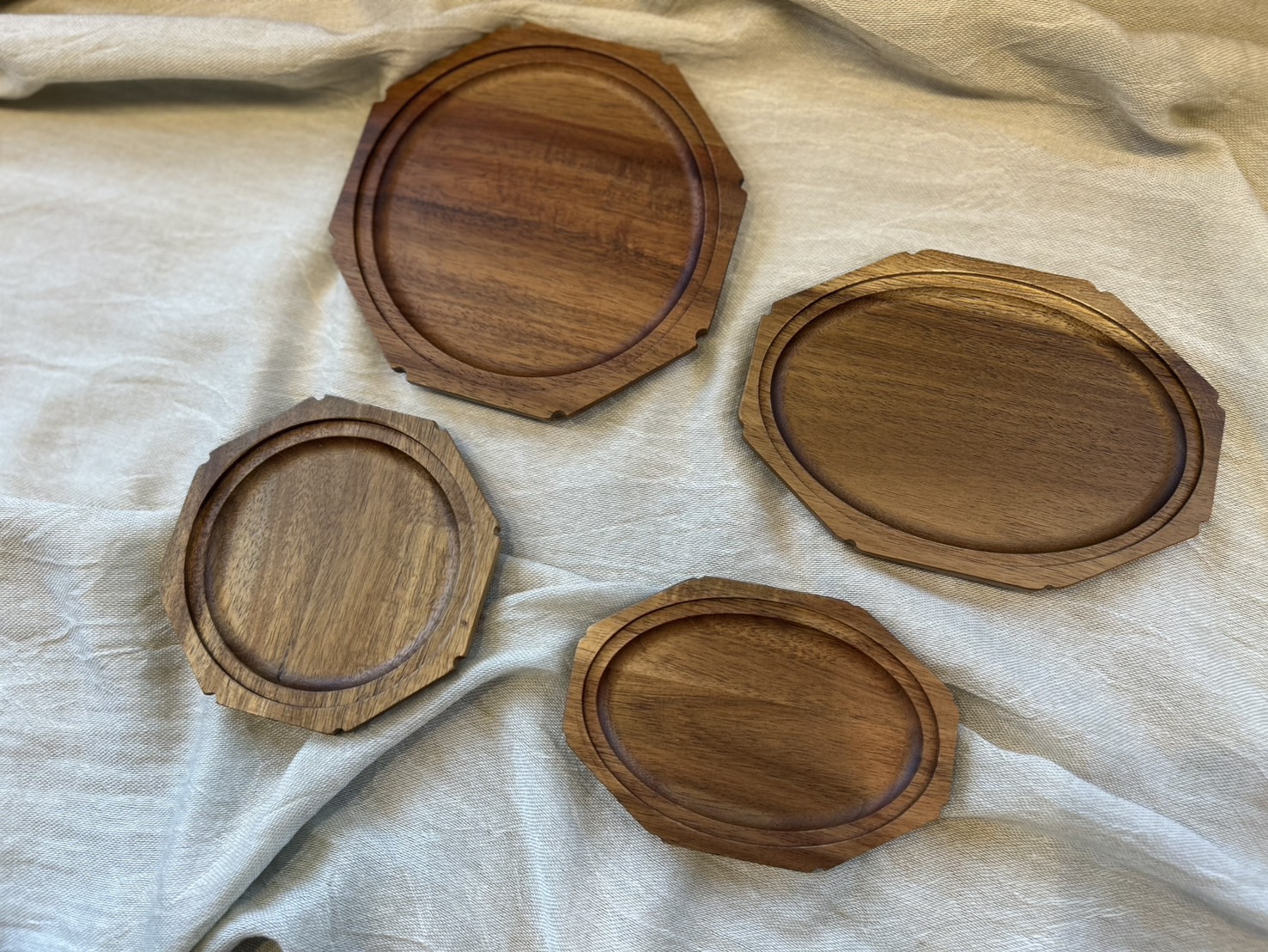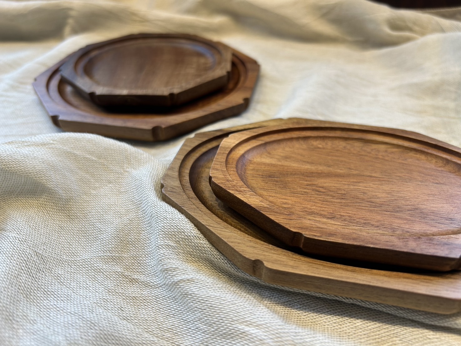 八角形の縁と、中央のまあるいフォルムが美しい、アカシアの木のプレート𓇢