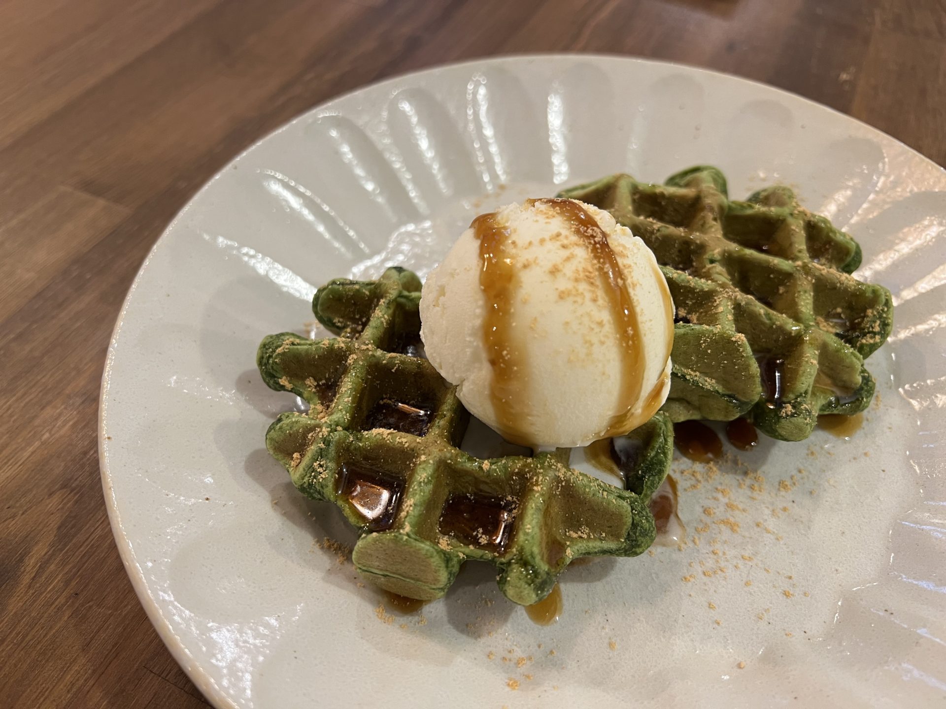 女性に人気の抹茶ワッフル。