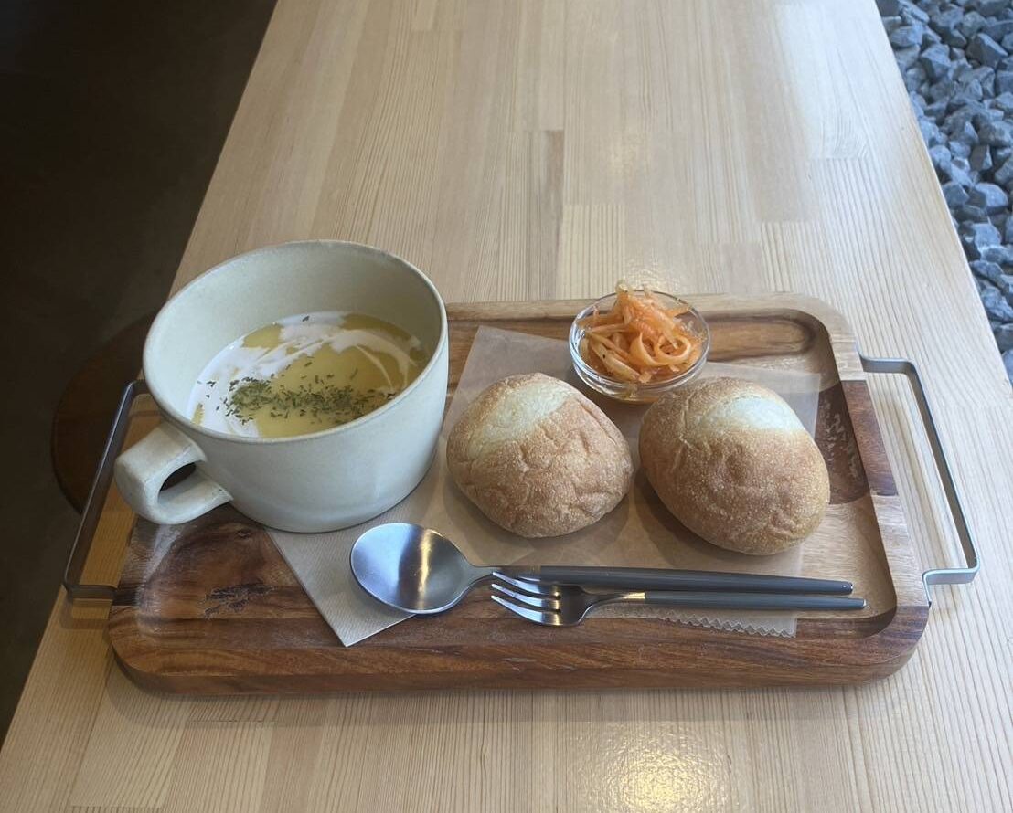 プチパン2つとスープがセットになった軽食メニュー