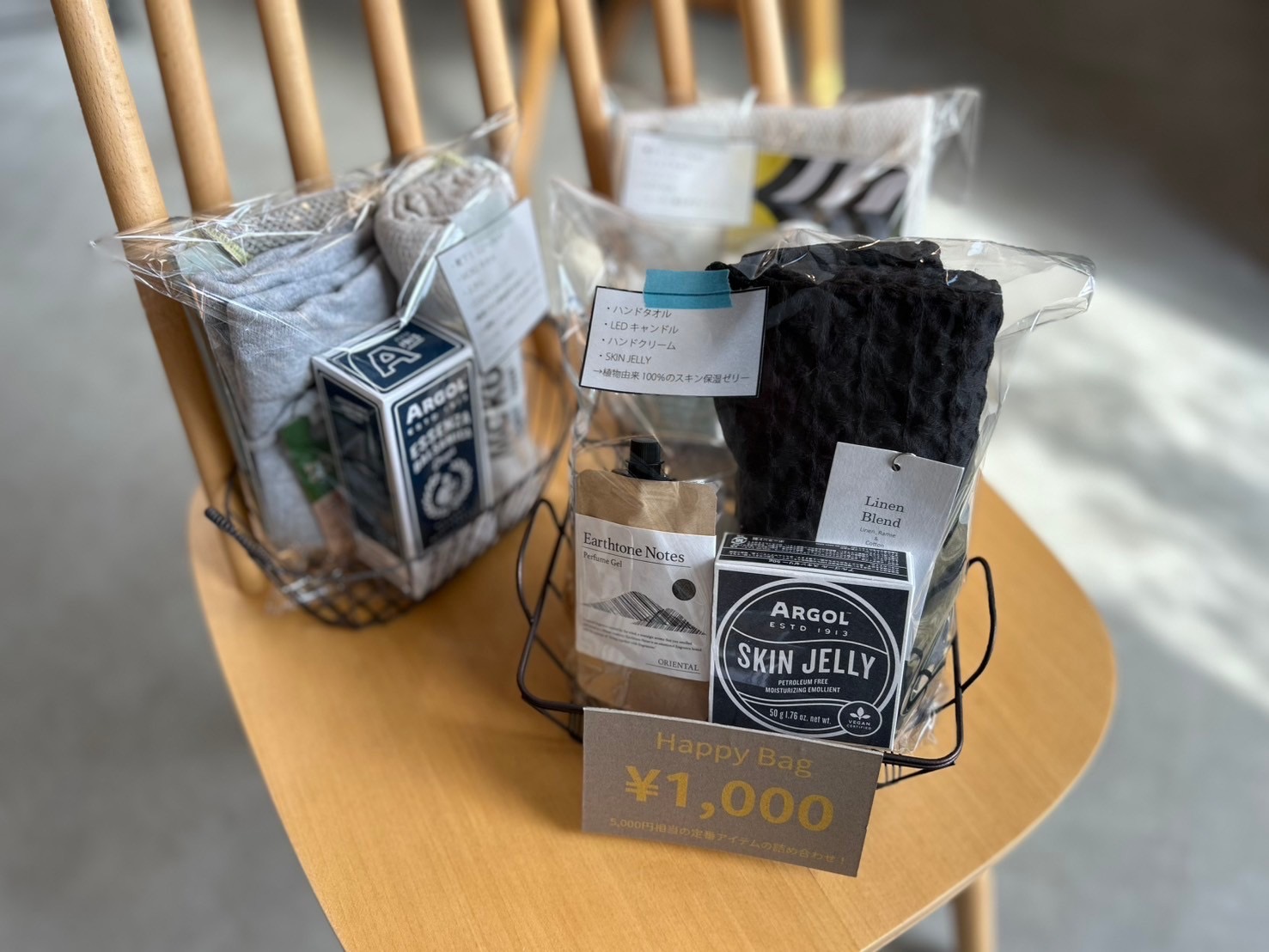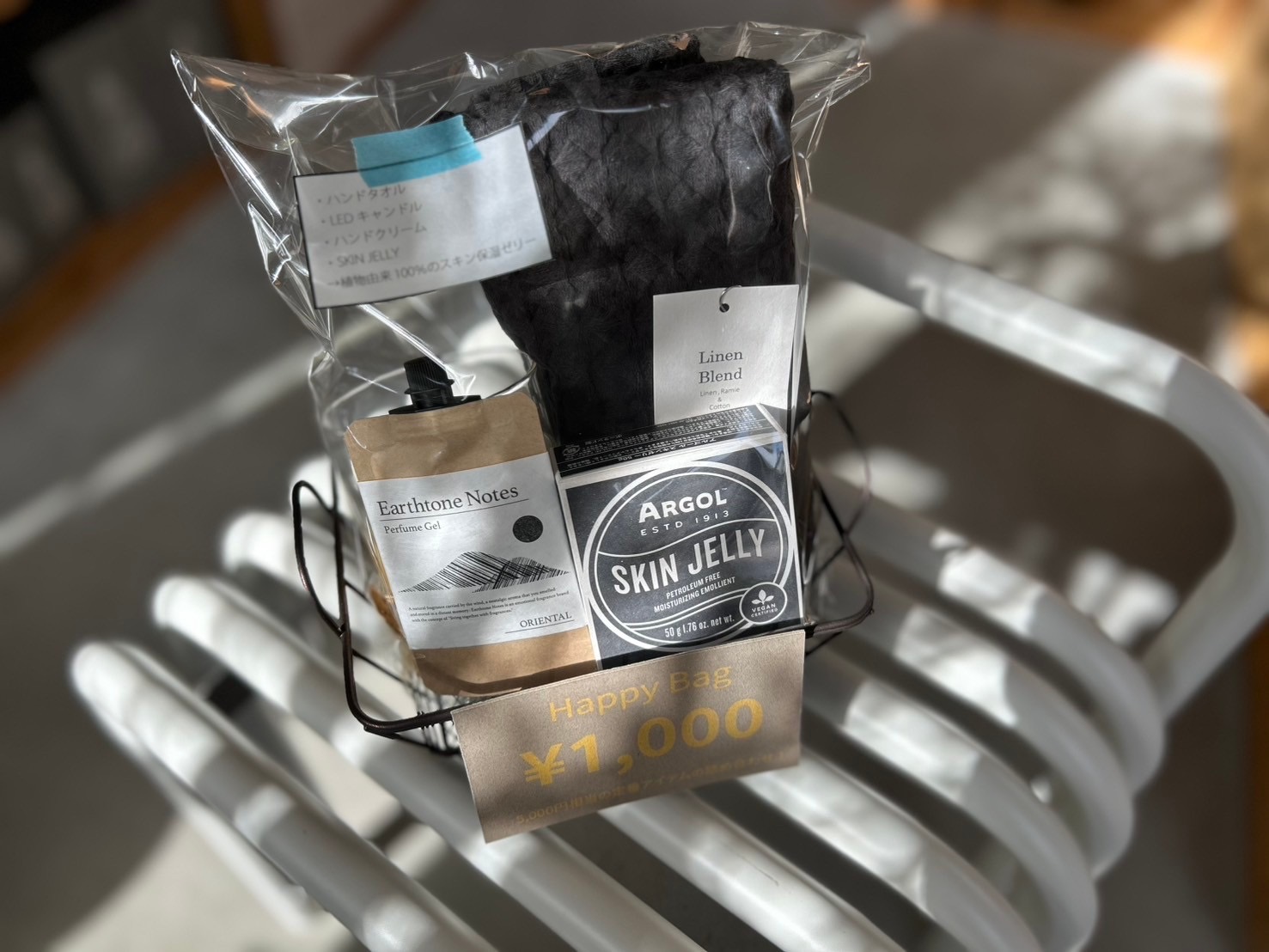 フェイスタオルやボディークリーム、靴下など定番アイテムから、暮らしのアクセントになるアイテムがランダムで入っています◎