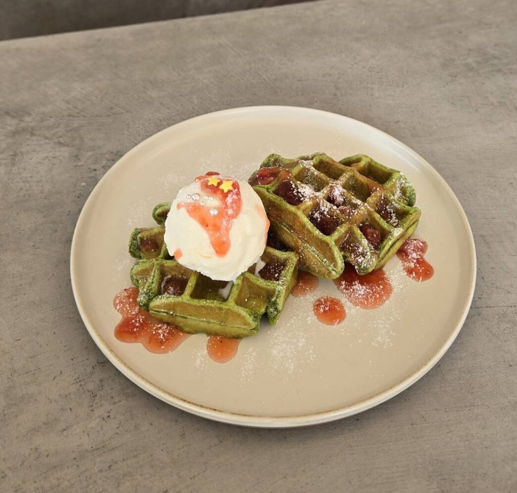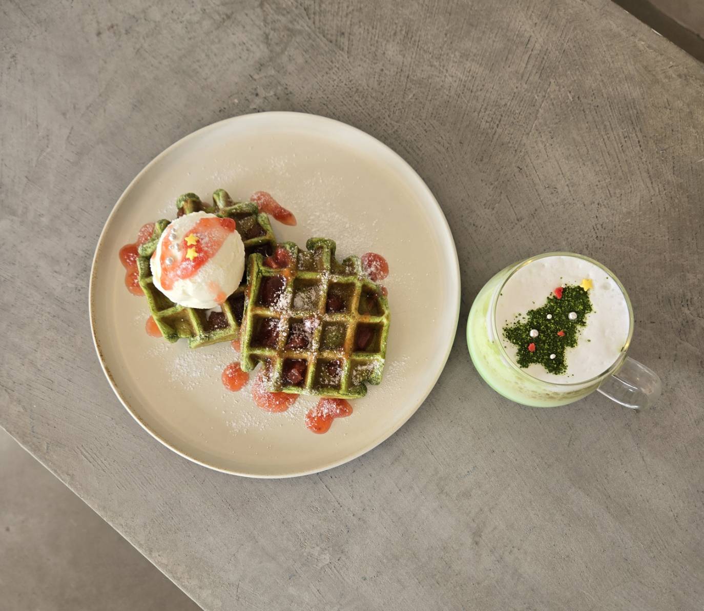 当店では、クリスマス仕様の抹茶ワッフルもご用意しております 𐩢𐩺