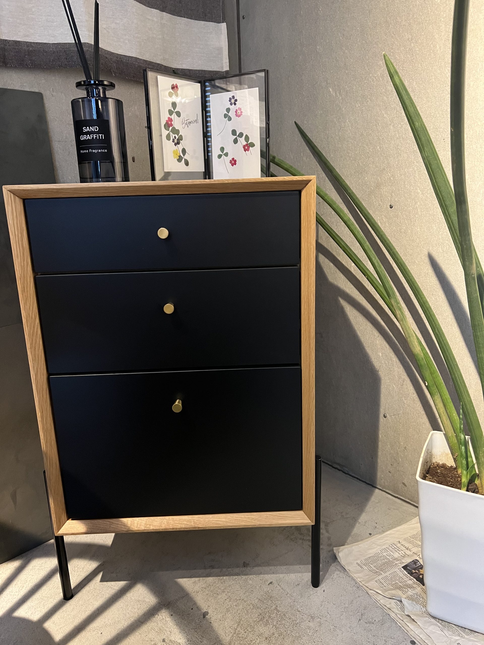 天板の上にランプやディフューザー、時計などを置いたり、引き出しには身の回りの小物など収納するのに便利です✨