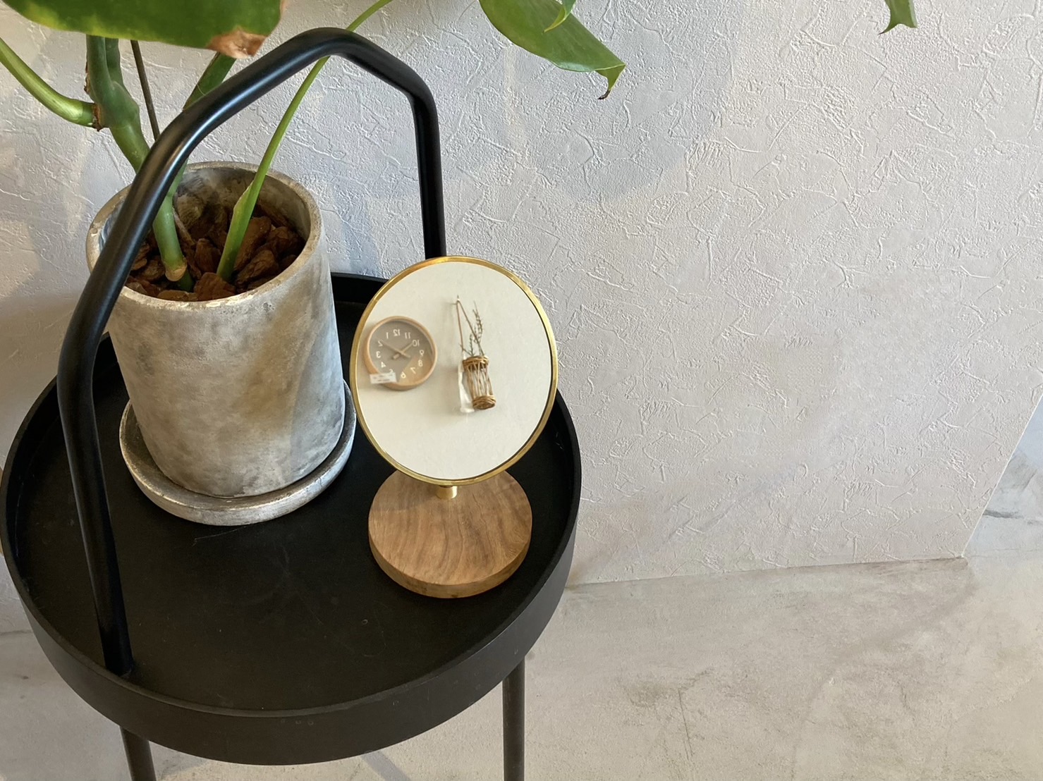 飾っておきたくなるデザインのミラー。