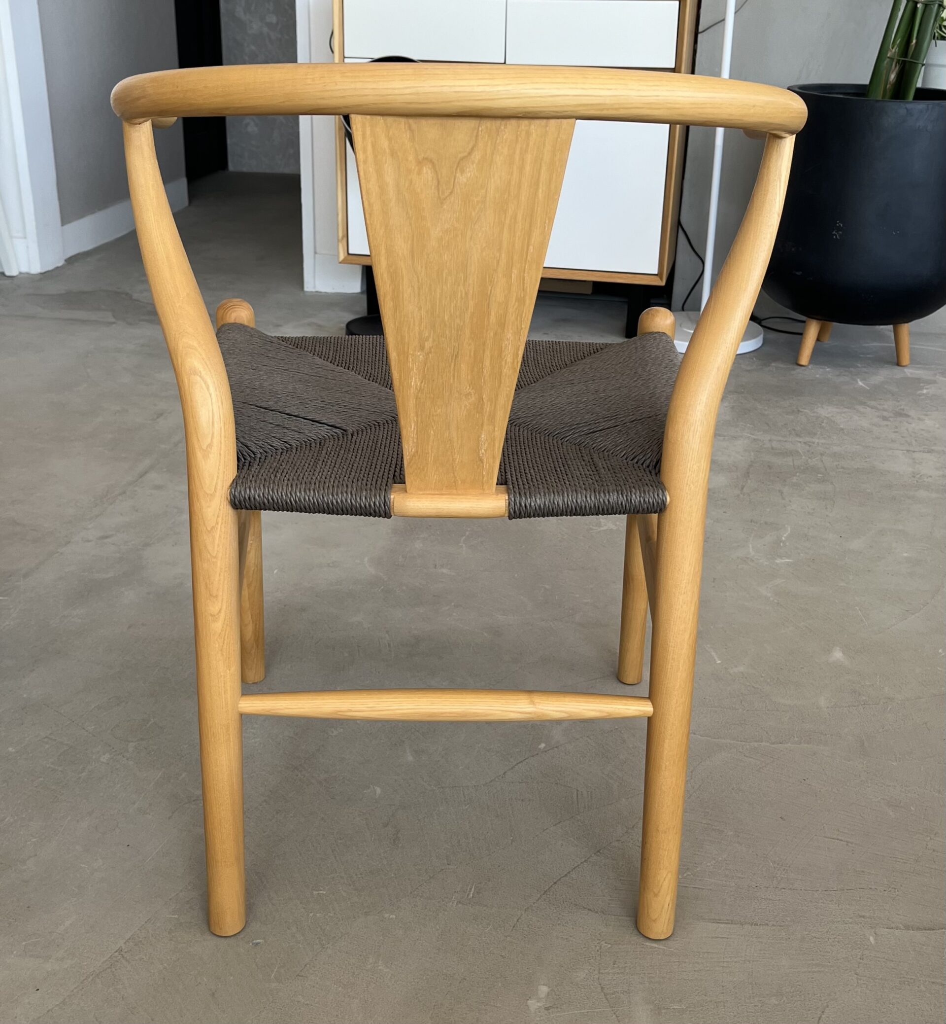 フレームに無垢材、座面にペーパーコードを使用しています。