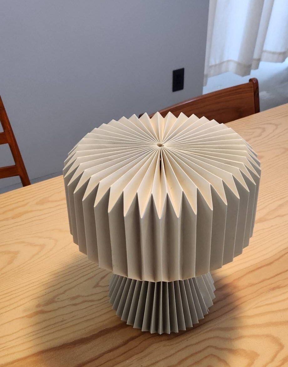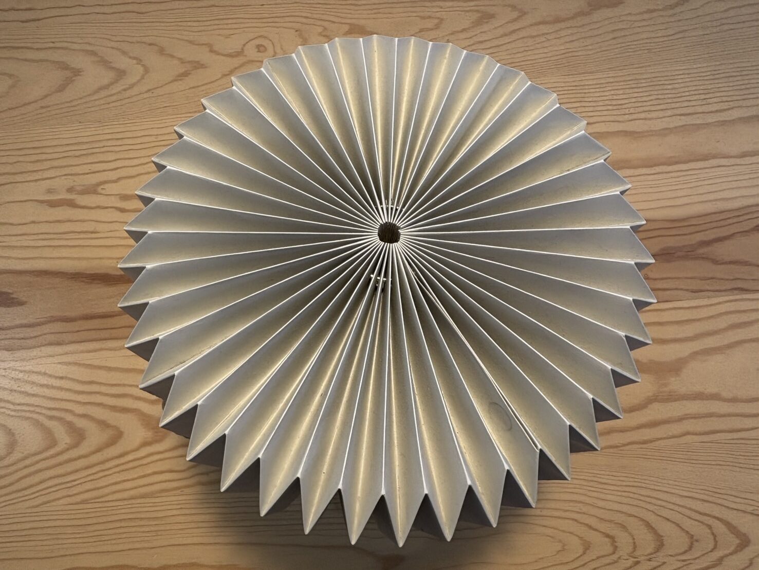 電球がシェードにぐるりと覆われているので、心落ち着く優しい灯りが楽しめます