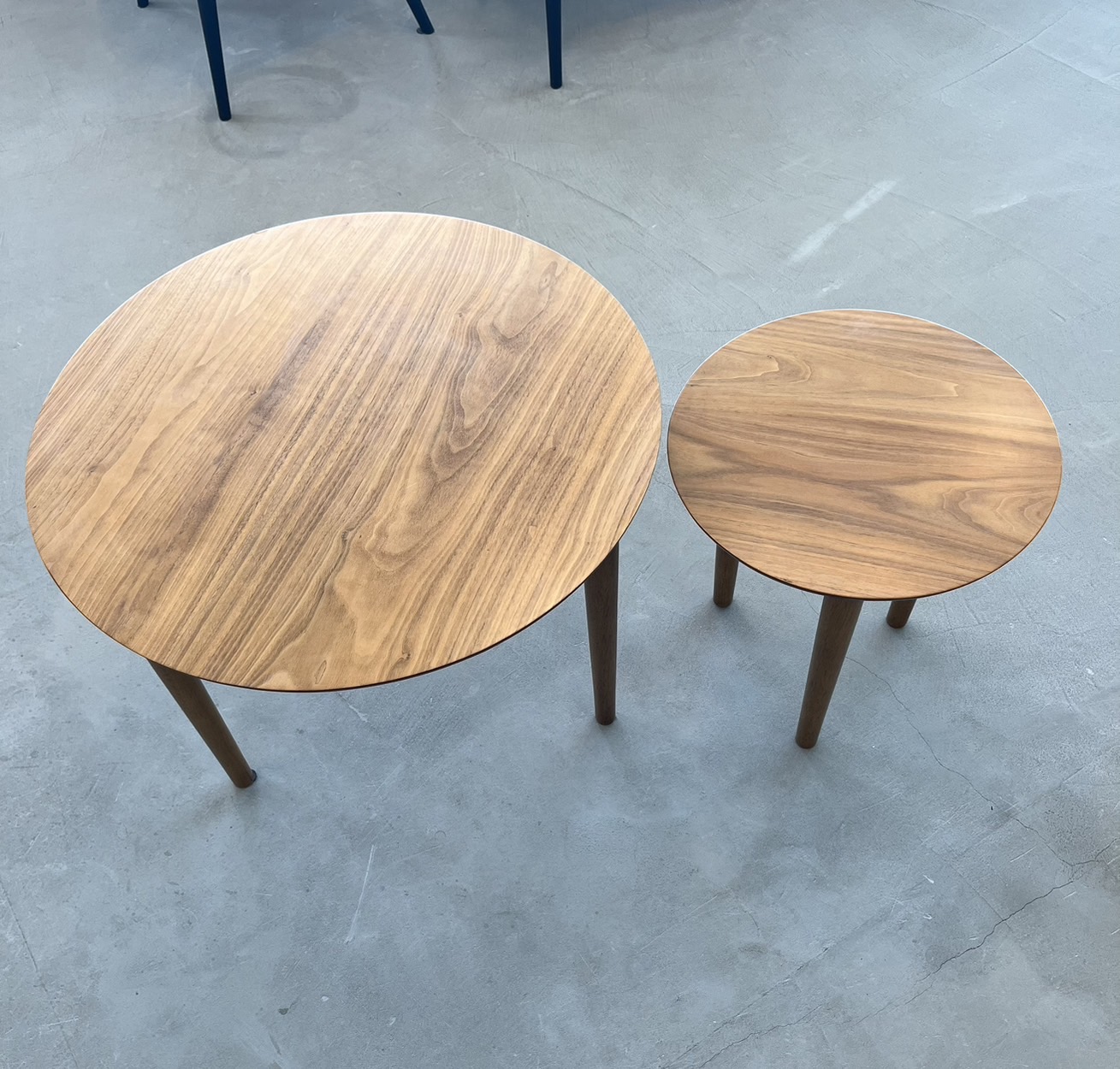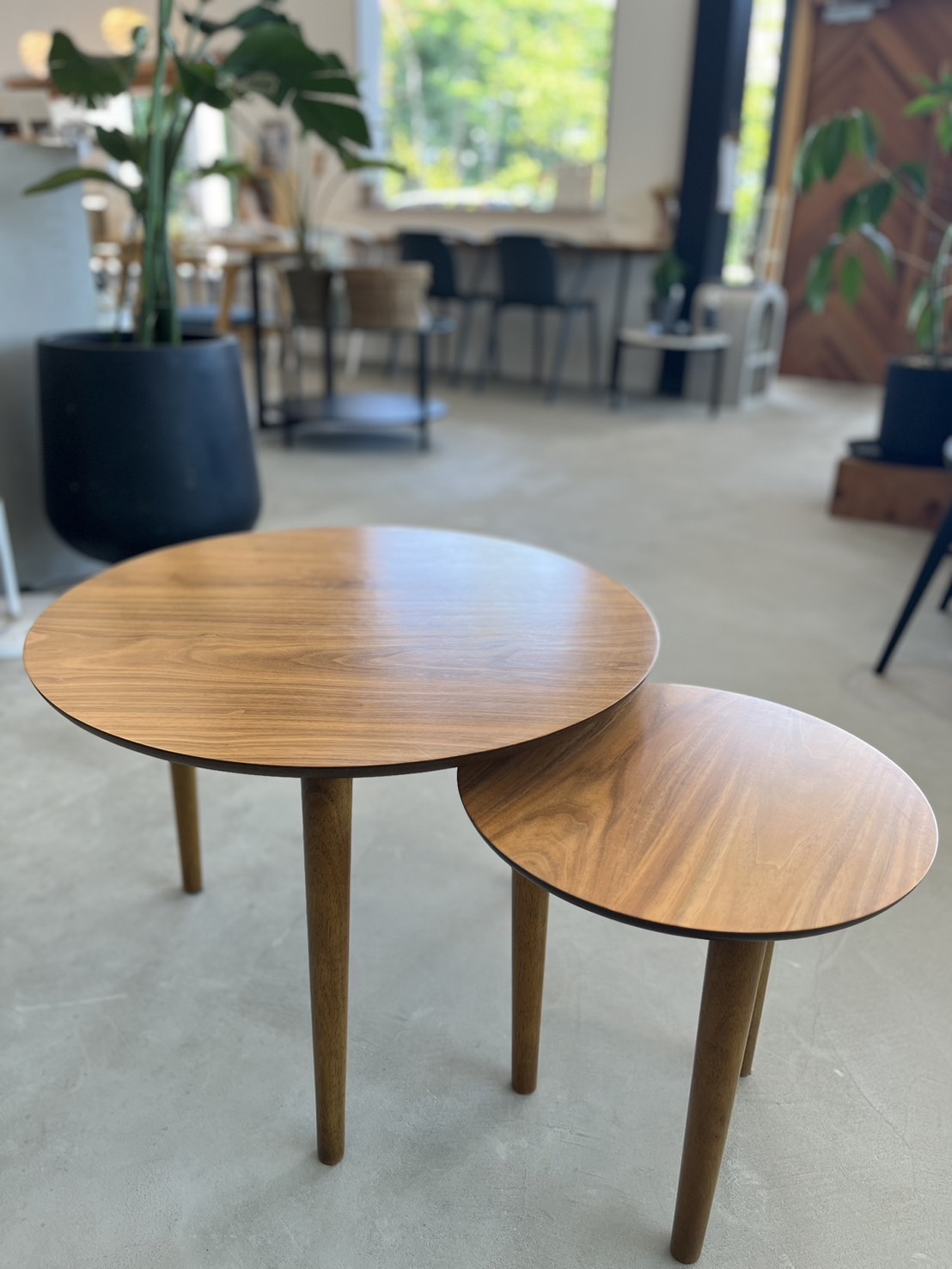 天然のウォールナットを組み合わせ北欧ヴィンテージの様な雰囲気のあるテーブルです。木目の色あいも美しいです。