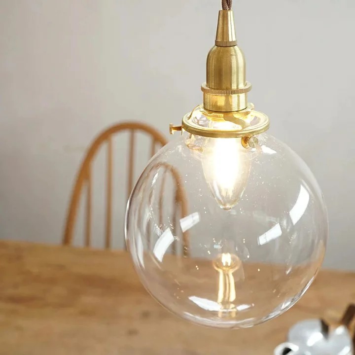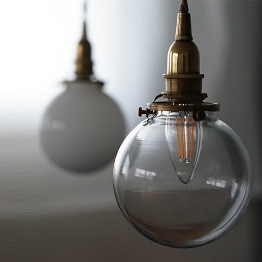 シンプルで透明感のあるクリアタイプのガラス照明。ナチュラルな丸形シェードは設置する場所を選ばず、どんなテイストのお部屋にも馴染みます。