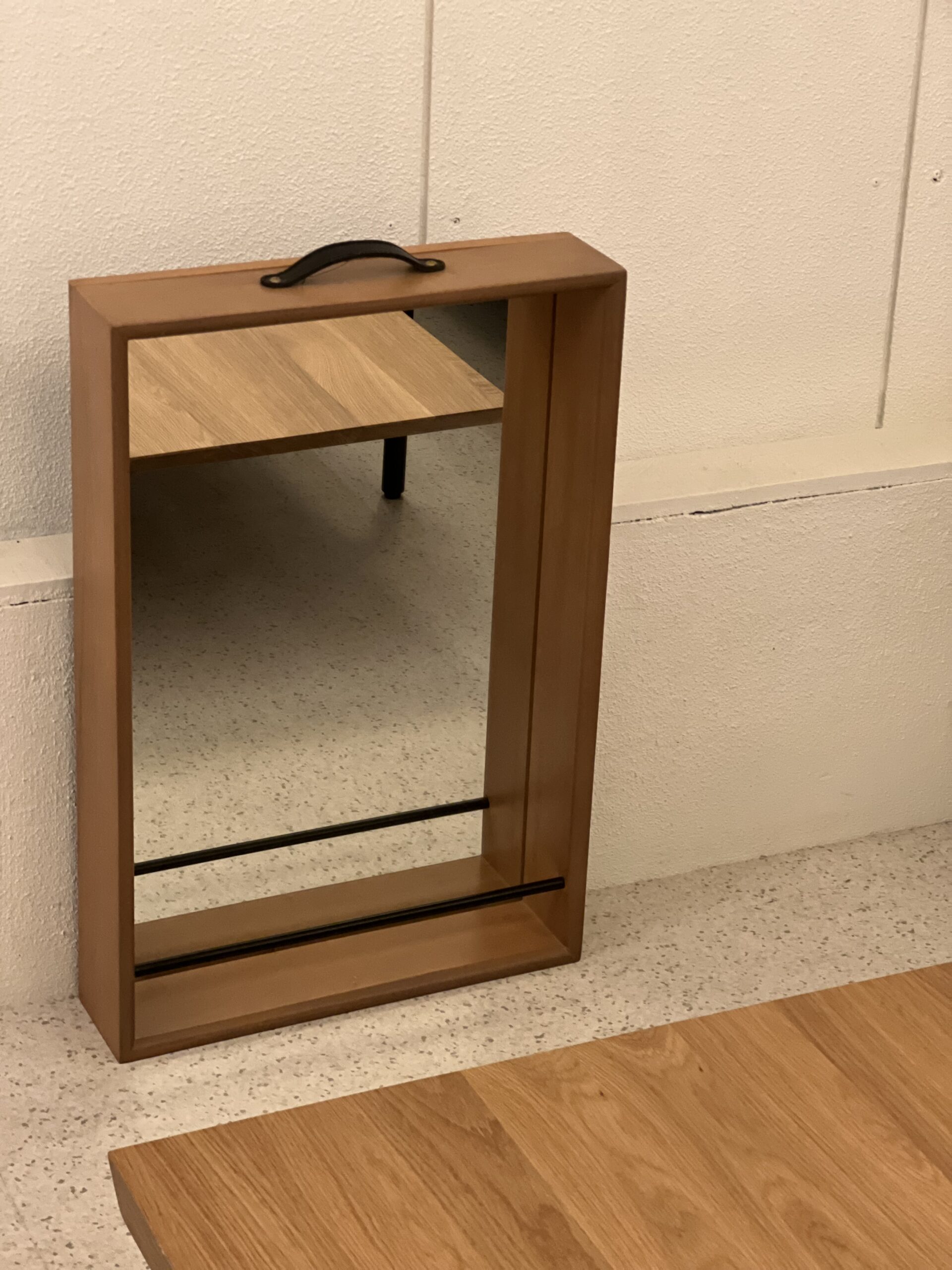 取手が付いて持ちやすく、メイク用品などを置いても倒れにくい仕様となっています。