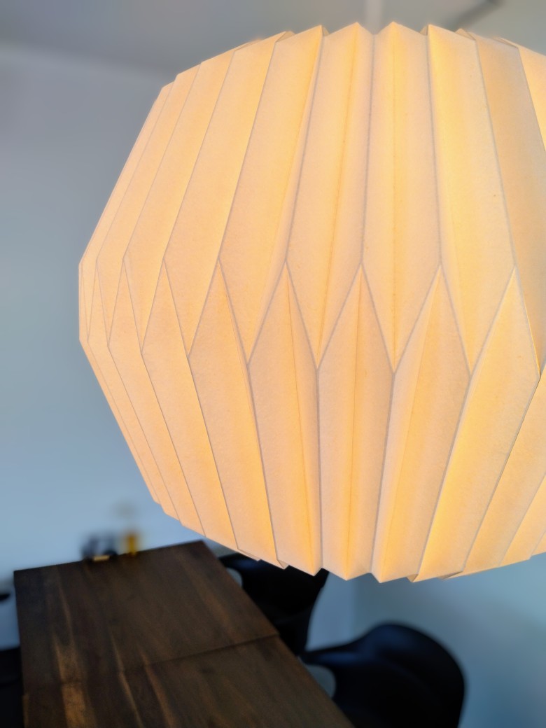 紙という素材の持つぬくもり感と、幾何学を構成する立体のフォルムのバランスが新鮮さを感じさせます。
