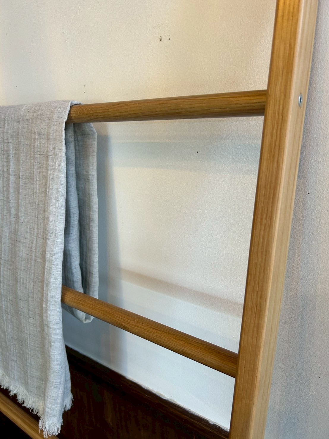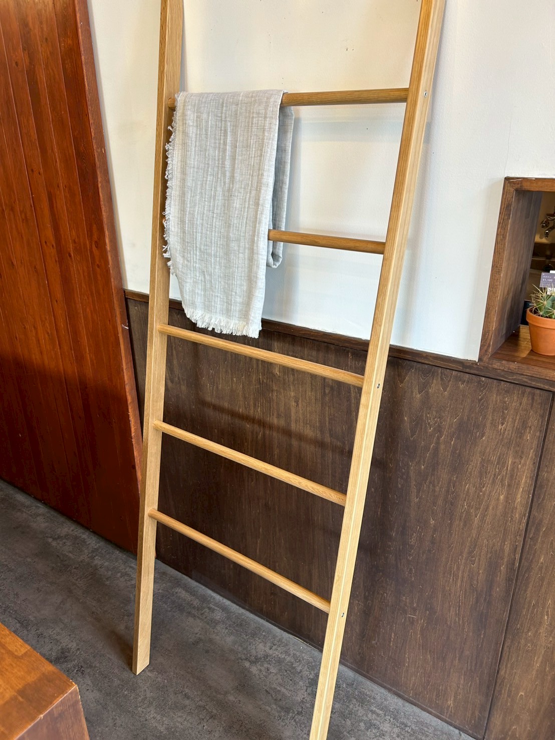 ハシゴのようなフォルムで、ファッションアイテムや雑貨をディスプレイ。壁に立てかけて使える省スペース設計で、見せる収納としても活躍します 。