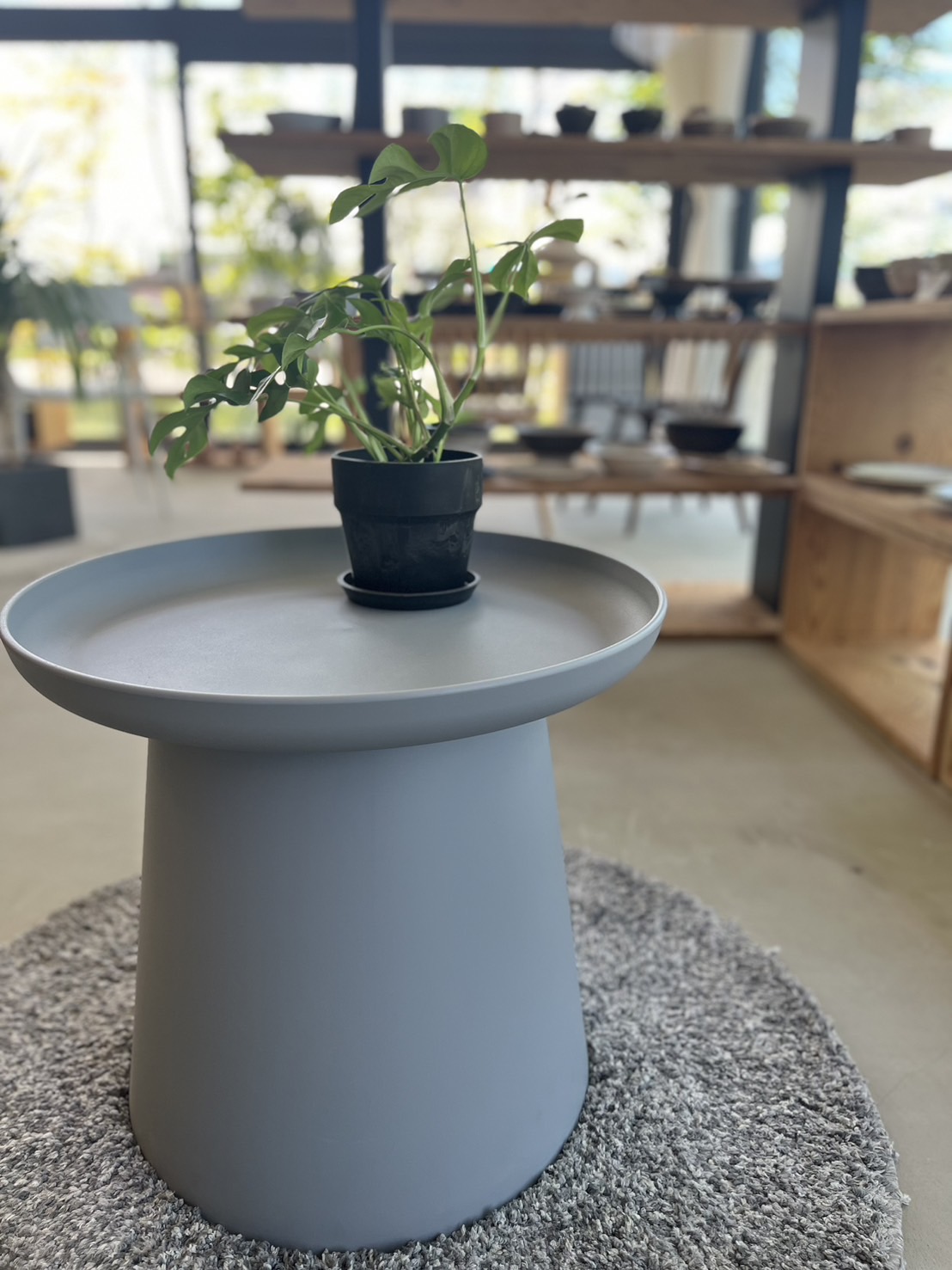 印象的なシルエットのラウンド型テーブ
