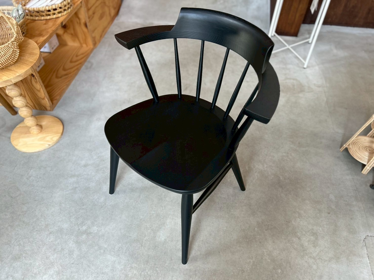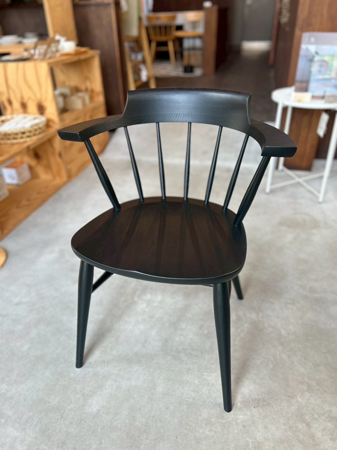 背もたれの曲線は王冠をイメージし、丸いスポークが特徴的なウィンザースタイルを採用。
