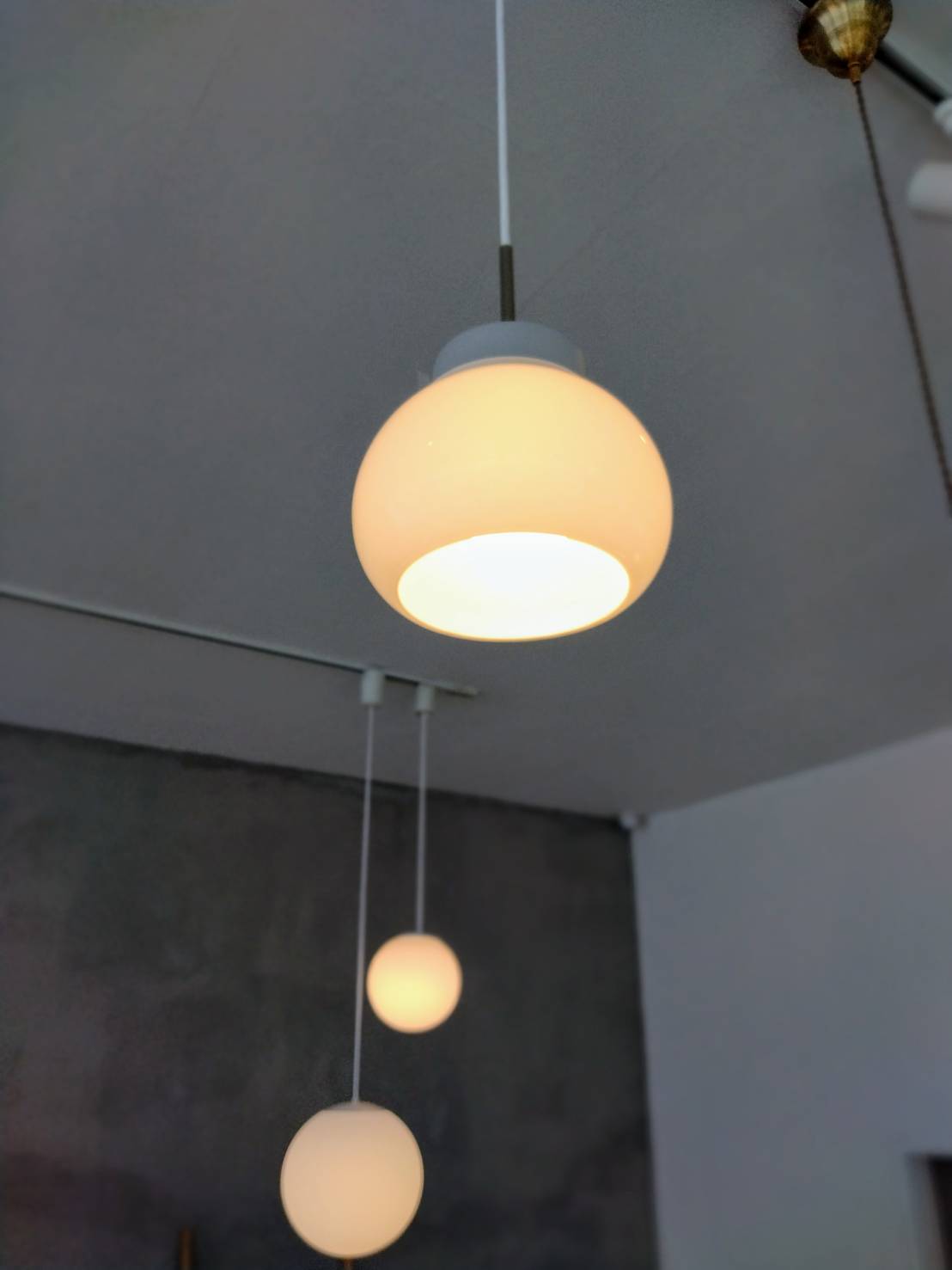 上下がオープンになったシェードは光が上下に抜けて、天井や手元を照らします。また、乳白ガラスは光を半透過して拡げるため、空間全体がアンビエントに明るくなります。