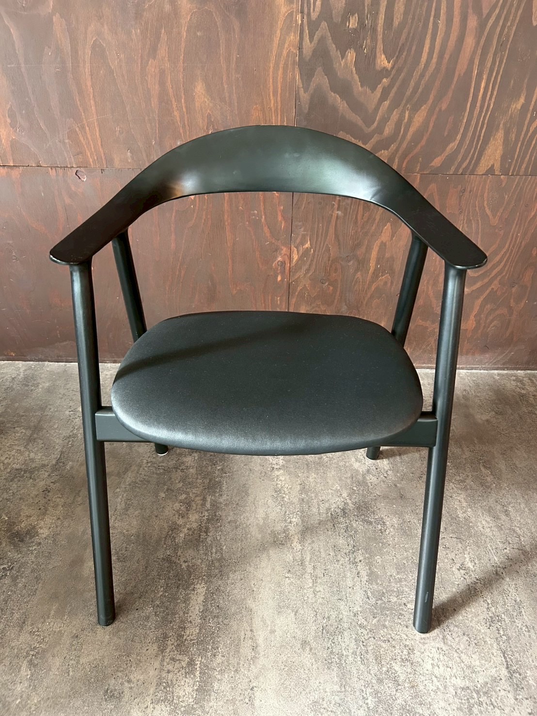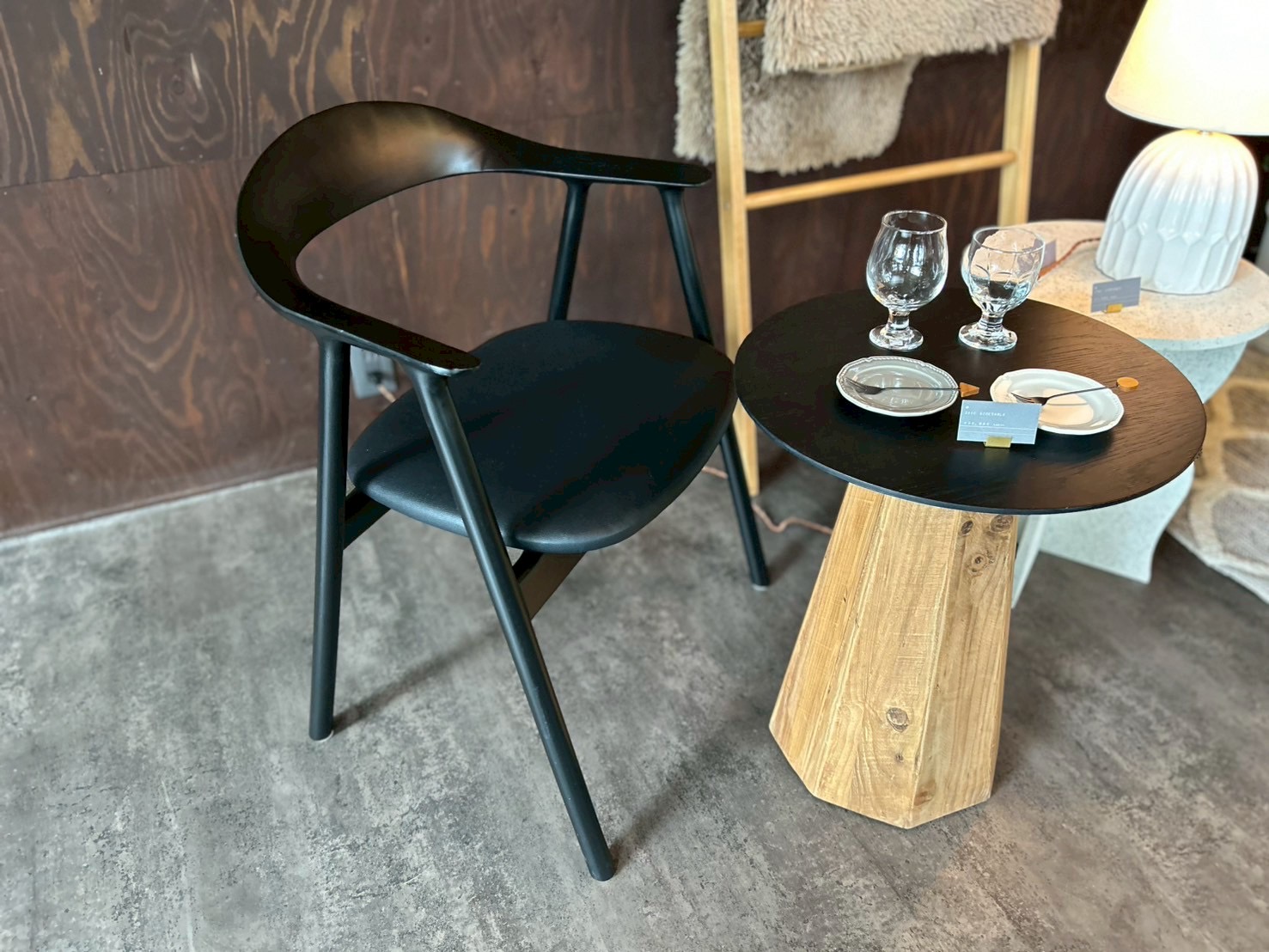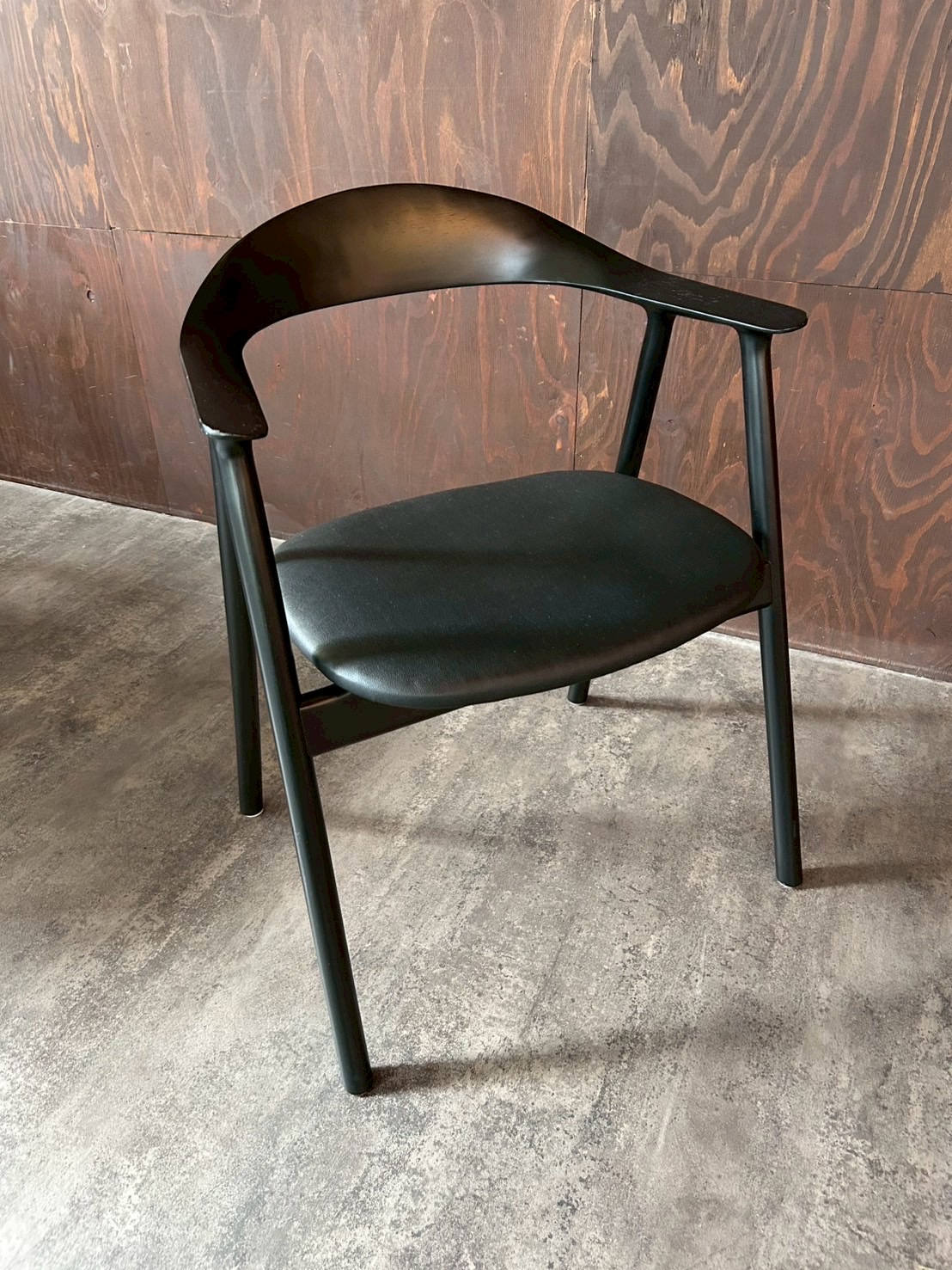 フレームは木材感を残したウレタン塗装仕上げで、ブラック張地とのコントラストも美しい。