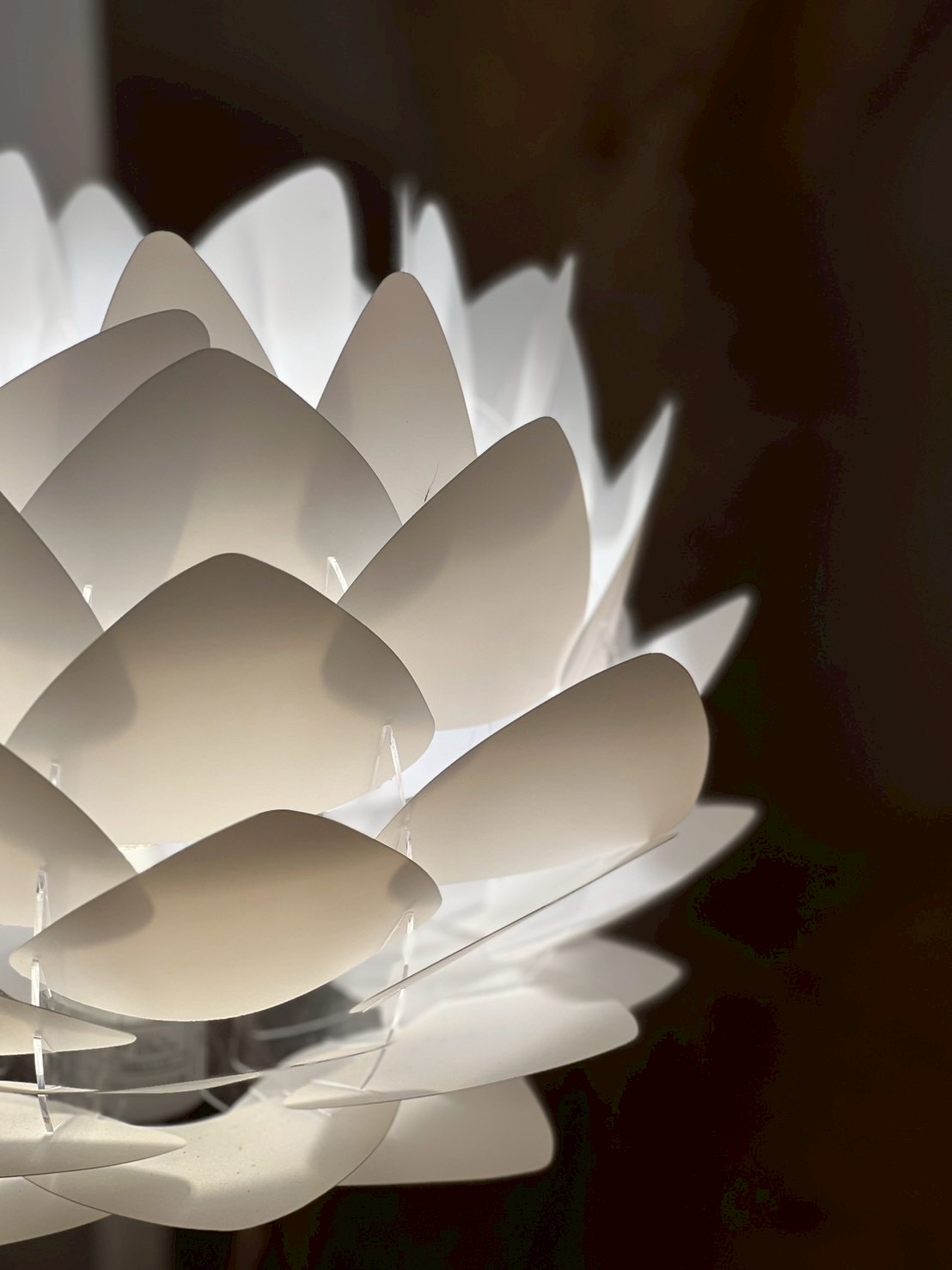 松ぼっくりのようなデザインで、三角のシートから洩れる光がまるで森の中にいるような雰囲気を