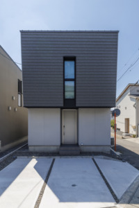 直線美が際立つ、シンプルモダンの外観。