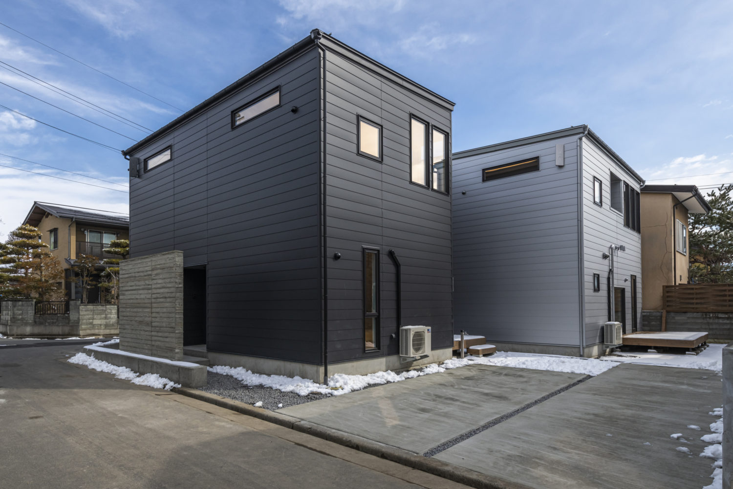 ブラックを基調とした外壁で