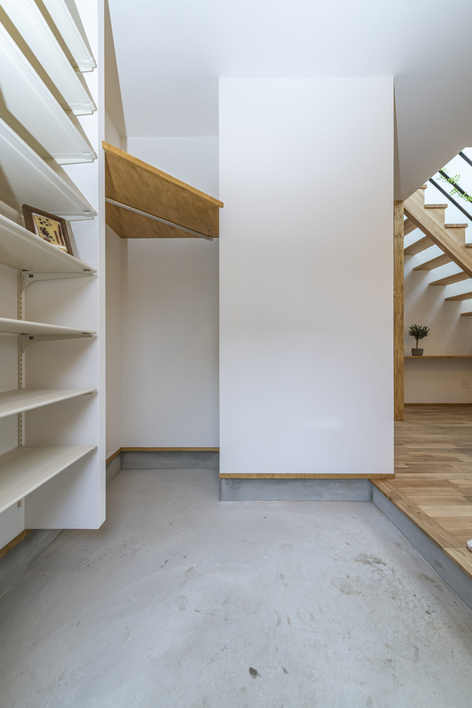 エントランスは見えないように、コンクリートウォールでパーテーション。