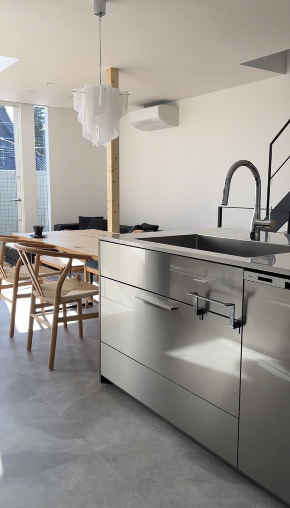 お隣の家は、ステンレスキッチンが一番に目を惹きました。