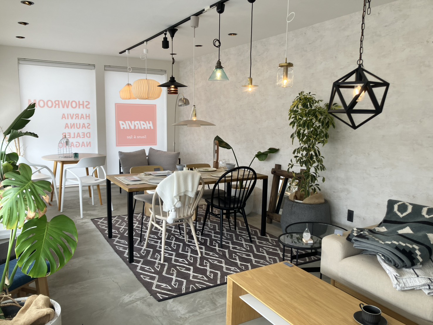 こちら弊社が代理店をしているハルビアのインドアサウナが置いてあります。