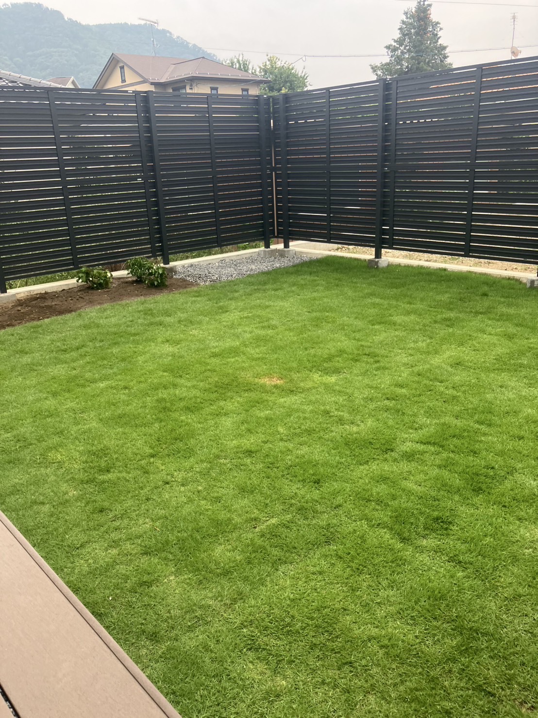 芝生は生き生きと成長し、家庭菜園には苗が植えてありました。
